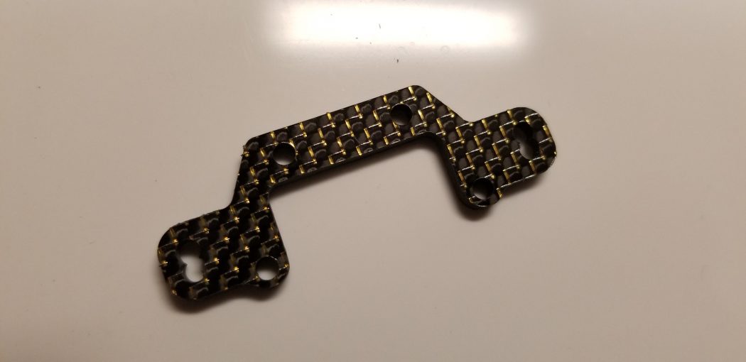 Own an awesome Tekno EB410 and looking to add some carbon fiber goodies? Well, Factory RC has you covered with a bunch of new items that reduce weight and look great! They are currently offering front and rear carbon fiber shock towers, the battery strap, steering top plate, center diff fan mount and camber plate. These items come in standard black carbon fiber and they also offer these items with gold and blue accents.