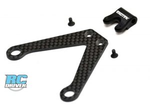 The special ‘V’ shape means the strap will not interfere with the esc wires when you take the battery out so that means shorter wires can be used. The carbon strap includes an alloy hinge plate for secure mounting.