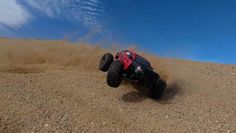 Durability is impressive. Even after repeated hard hits and flat landings, the chassis, suspension, and drivetrain held up without major issues. The only annoyance was the body clip system filling with sand, making removal difficult. Aside from that, the FMT10 proves itself as a capable, high-fun basher that can stand up to punishment.