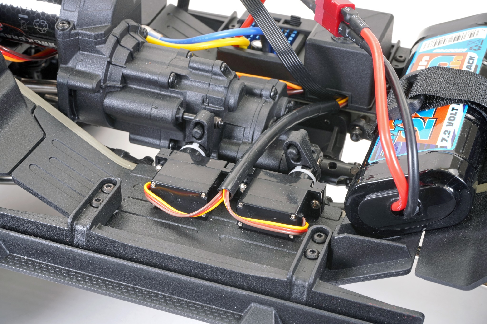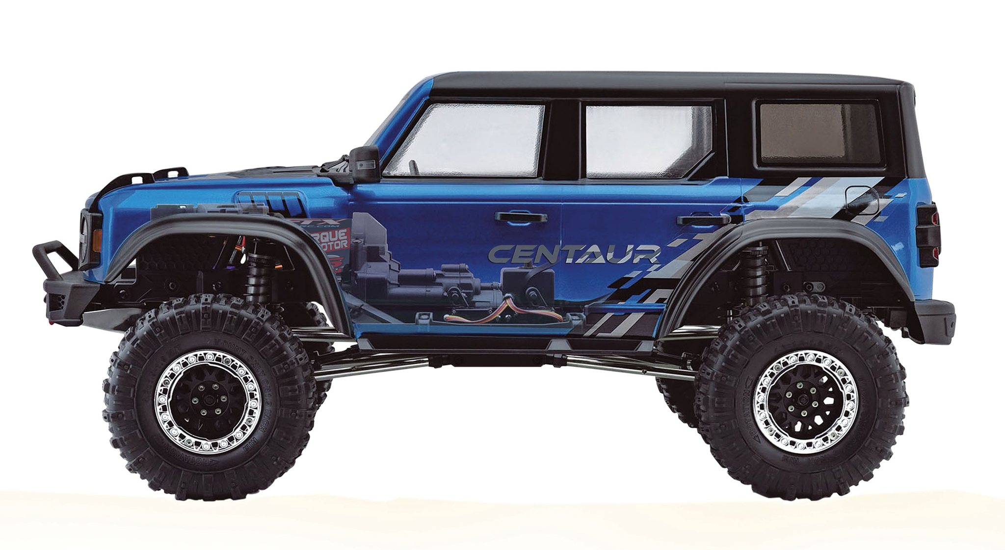 A waterproof 25kg metal geared steering servo fitted with a metal arm, a 35-turn 550 size brushed motor and Hobbywing WP-1060 speed control are all installed so that the Centaur will be ready to take your trail adventure to the next level.