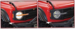 Multi-function front and rear LED lights are factory installed, connecting seamlessly to the vehicle via a magnetic connector for hassle free body removal along with the Centaur’s hidden clipless mounts.