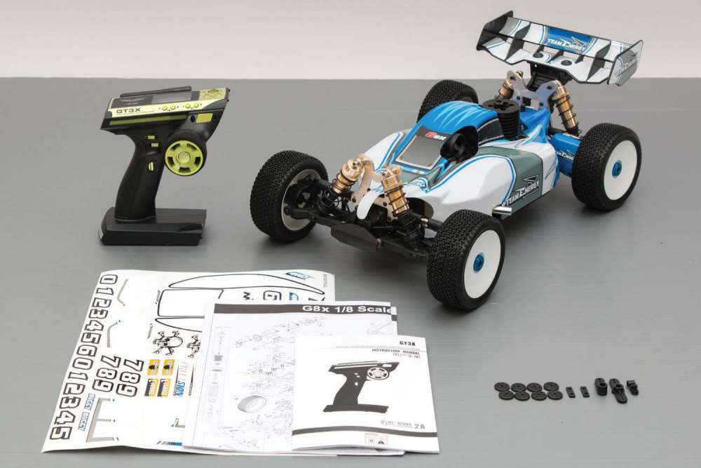 Fast, cheap and durable. It used to be a rule that you had to pick two of the three since it was nearly impossible to meet all of the criteria in one model. With the advance of manufacturing techniques and improvements in the designs of buggies in general, we live in a great time in that there are available models that are fast on the track, durable enough for bashing and very affordable, which helps bring people into the hobby. A prime example of this is the Team Energy G8X buggy, a nitro RTR 1/8-scale vehicle that can function as an affordable entry into racing and has many of the features typically found on much more expensive dedicated racing vehicles. Because 1/8 vehicles are so durable, this also makes the G8X a prime candidate as a heavy duty basher thanks to its beefy construction. It even has some interesting design features, making it lighter than some of the most expensive models available. Because of the attractive price point, this buggy is great for people interested in trying out racing, but who weren’t willing to dish out huge bucks just to stay competitive and is definitely worth a closer look.