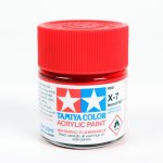 For trail trucks and scale cars that have separate ABS plastic parts like side-view mirrors, windshield wipers, rear wings and full interiors, Tamiya carries bottled paint for this purpose. The Tamiya acrylic bottled paints are made from water-soluble acrylic resins and are excellent for both brush and airbrush application. These paints can be sued on styrene resins, Styrofoam, wood, plus all of the common model plastics like ABS. The paint covers well, flows smoothly with no blushing or fading and can be blended easily. Tamiya sells their acrylic bottle paints in both 10ml and 23ml sizes. There are numerous colors to choose from in both gloss and flat pigments.