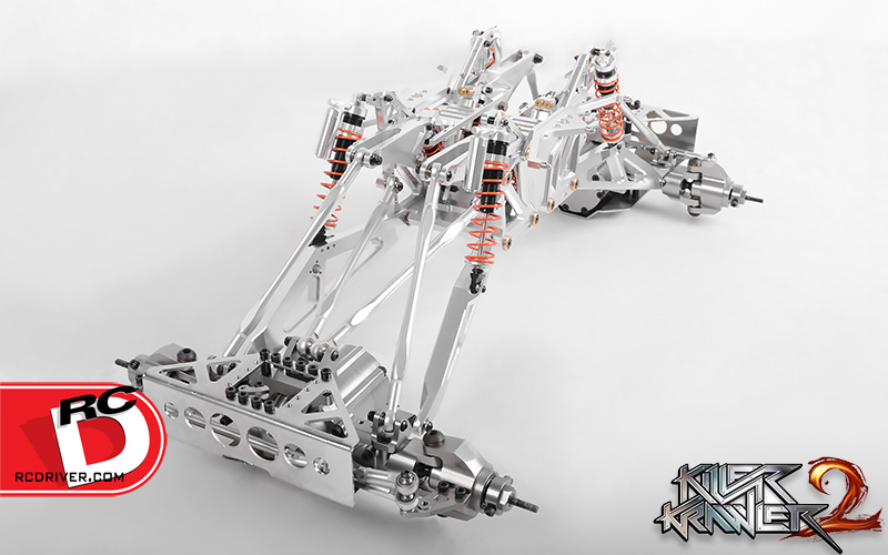 The huge, nearly 30” long Killer Krawler 2 is designed from the ground up to be a big and bad roamer. The complete CNC machined axles, chassis, shocks, links and rod ends, are built tough and ready to perform any task. Some features include remote locking diffs, stamped steel skid plates, MOA axles, motocross inspired pivot points with quad cantilever suspension and piggy back style shocks.
