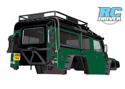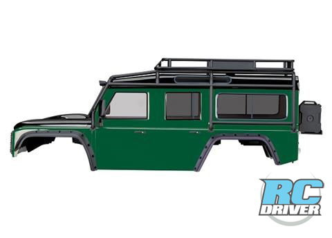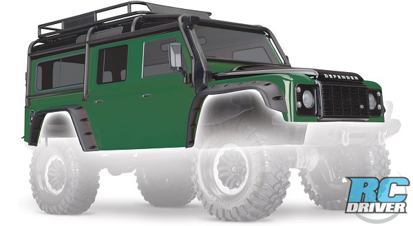 Add a new look to the popular Traxxas Land Rover Defender TRX-4 with the new green body kit. The body comes pre-cut, painted with applied decals, and ready to mount on the TRX-4 chassis (324mm). fuel canisters, snorkel, grill, and jack.