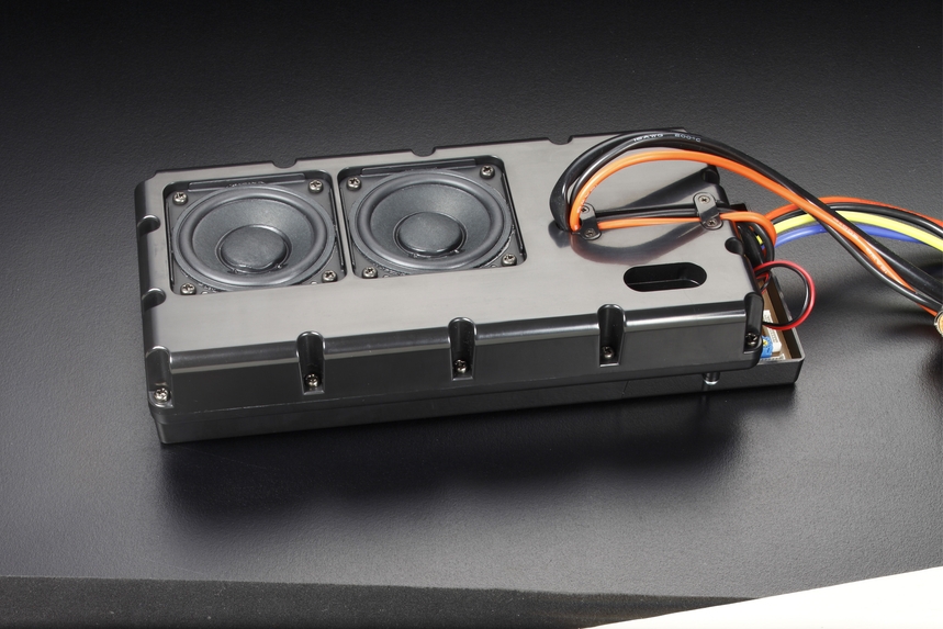 Here is what makes Tamiya’s Full Option tanks truly special. Included with each of the Full Option tanks is a DMD Control Unit and DMD Multi-Function Unit with speaker box that links the tank’s actions with realistic sounds. For example, authentic engine sounds like engine start up, acceleration and idle, engine shut down, turret rotation sounds, gun sounds-main and machine gun fire sounds and track related sound effects. A really cool thing is that Tamiya did not take the easy route and give all their tanks generic sounds, but rather the genuine sounds for each tank. Tamiya designers traveled to museums and other locations around the world to record the actual engines of the tanks so that the sound is 100-percent authentic in the RC version. Even going so far as to recording the metallic clanking of the tank tracks. Furthermore, when the main gun fires or the machine gun, a LED flashes in the barrel to resemble a muzzle flash and it is linked to the appropriate firing sound for greater realism.