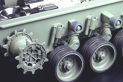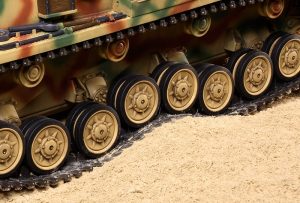 As a means to propel the tanks, Tamiya uses two 380 size brushed motors or in the case of the US M1A2 Abrams and Leopard 2 A6, two 540 brushed motors are utilized. The motors work in unison or independently which allows the tank forward/reverse running and pivot turning which lets the tank turn in place. The wide tracks coupled with the suspension system and dual motor gearboxes provide outstanding maneuverability.
