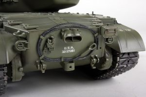 Since Tamiya is behind the creation of these tanks, you will find that each and every one is an accurate and faithful reproduction of the real thing—the scale realism is just outstanding. ABS plastic is used for the bodies of the tanks which is the perfect substance to achieve exacting detail. With a close look you will find intricate details like panel lines in the armor, the Zimmerit armor coating found on some of the German tanks, latches, hinges, tow hooks along with ammo boxes, jerry cans, tool boxes, spare track, wheels and even tow cables. The main gun barrel is one of the parts on the body that is not made of ABS and is actually turned aluminum.