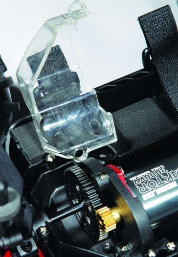 ADDITIONAL FEATURES: Additional features include the use of Deans style connectors, making it easy to use other batteries that you may have already laying around for other RC vehicles. The center driveshaft as well as the typically exposed pin- ion and main spur gear are covered by a cool, clear plastic protective shield. The housing shields the moving parts from the elements and is for sure a really nice feature. The kit includes a Helion HRS-3.1 2.4GHz radio system which has adjustable end points, dual rate, digital trim and servo reversing.