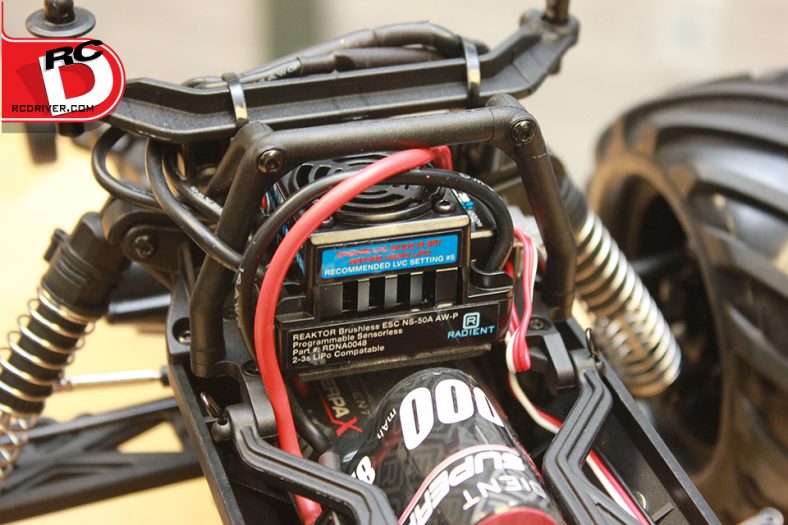 -Electronics Package. An Ikonnik HRS3 radio comes with the truck and its loaded with features you would find on many high-end radio systems. The set comes with a 3000mAh NiMh battery and 1A charger both fitted with a high-power T-connector. Although we like that Helion gets you going with an included wall charger, we suggest tossing it right at the Hobbytown and grab yourself a cool charger from the Radient line. Speaking of Radient, the truck comes equipped with a Radient Reaktor50-4 brushless system. Brushless efficiency and power will make this truck a blast and its 3S capable so if you’re speed hungry, this truck can dish it out.