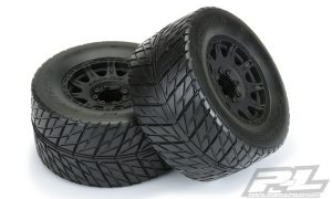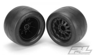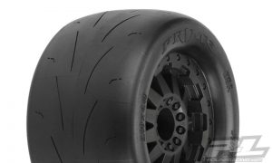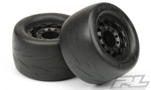 Pro-Line offers four different options for the Prime 2.8” mounted street tires which have been specifically created for high speed action with your 2.8” monster trucks. Since they come out of the package already mounted on the wheels, you don’t have to worry about gluing them up and feel confident that the bond is secure between the tire and wheel. Pro-Line utilized its legendary M2 soft race rubber compound along with a near complete slick tire for outstanding traction on concrete and asphalt. The tires feature smooth sidewalls to allow for controllable burnouts and slides where ordinary treaded tires would catch and flip your rig. Pro-Line was able to achieve a design in the Prime tires that reduces tire expansion for added stability during high speed runs. Below is the list of the different Prime 2.8” Mounted Street Tires options. The main difference between the tires are the type of wheel that they are mounted onto and their wheel hex size.