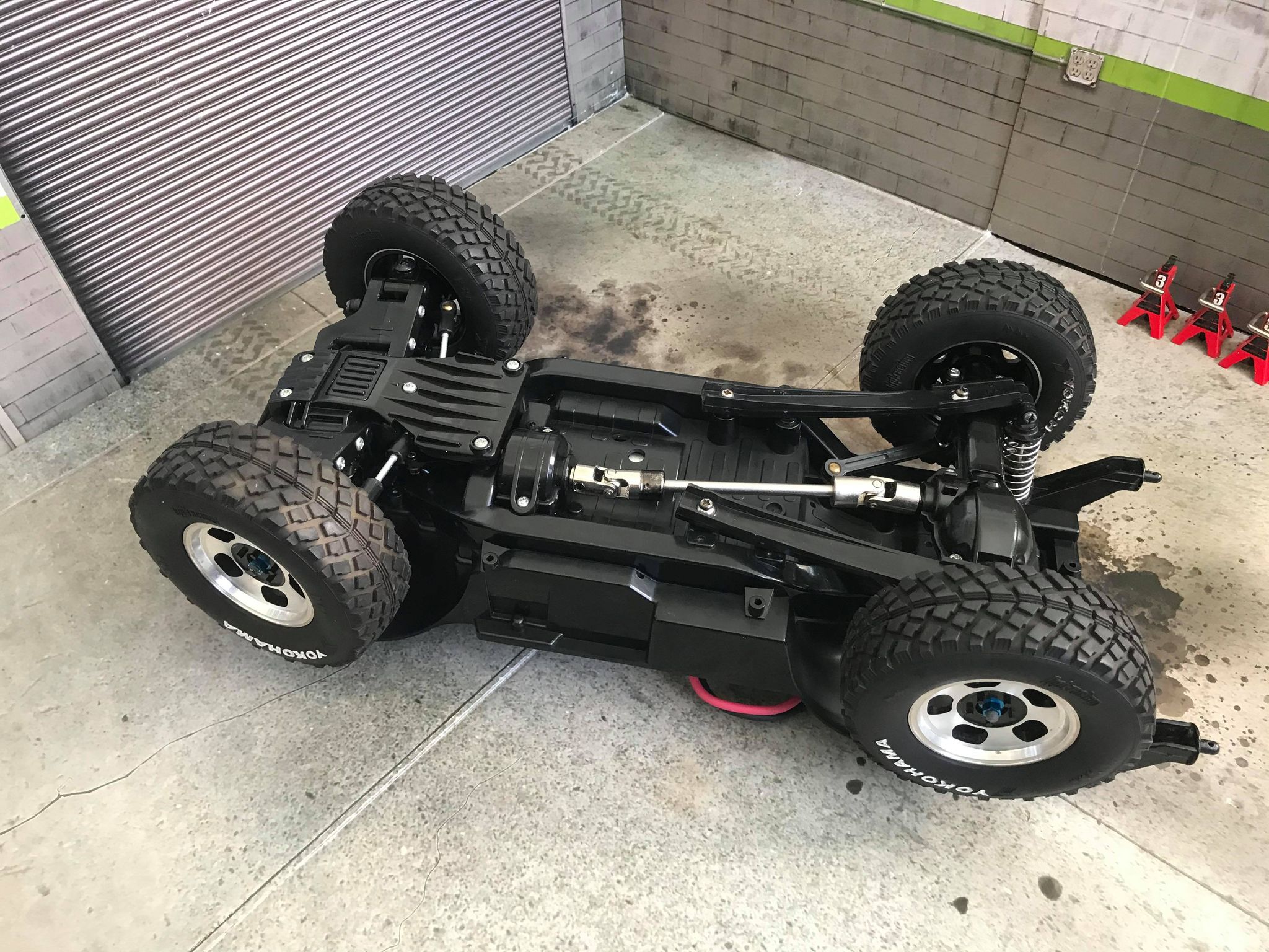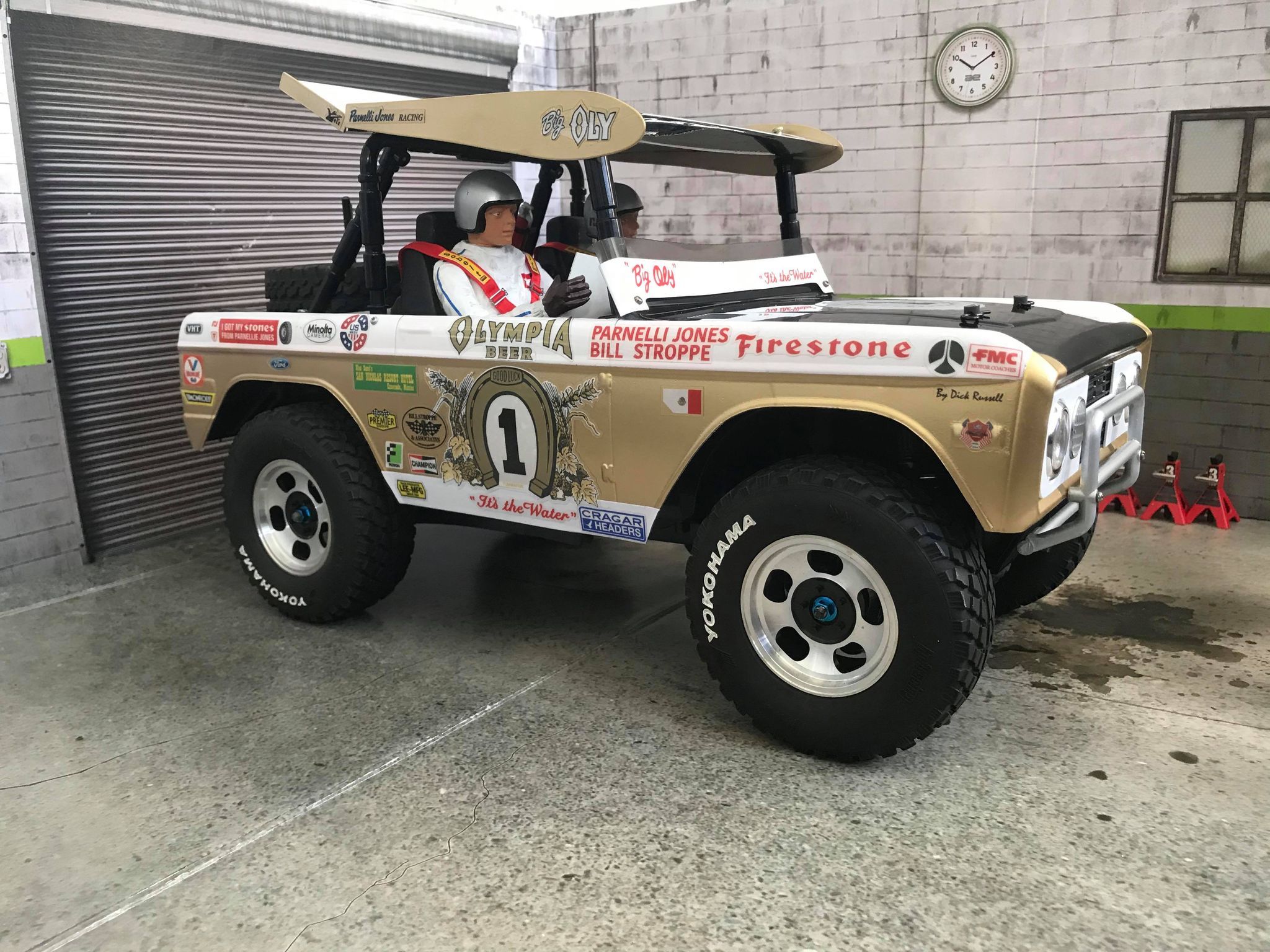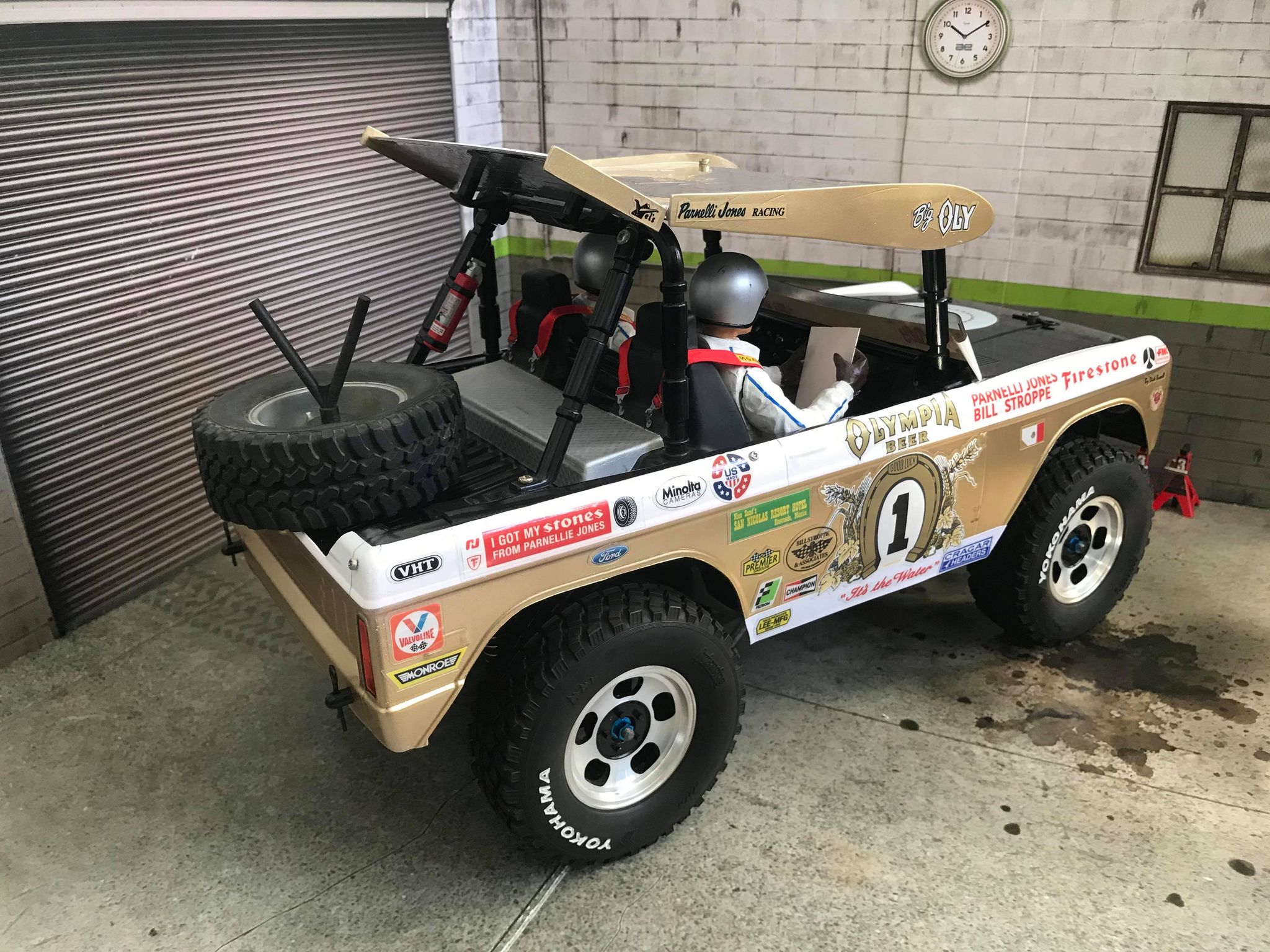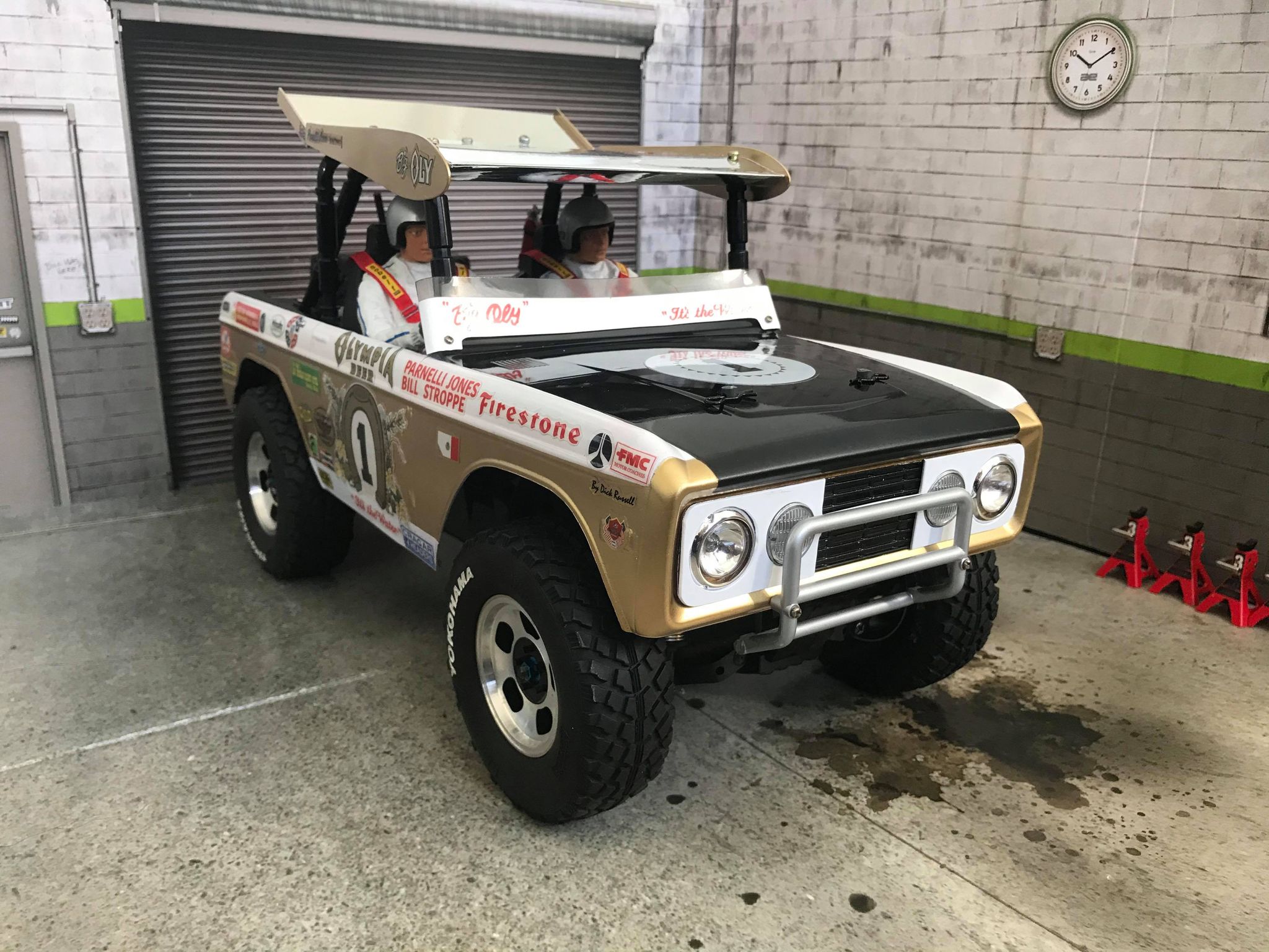 James tells us that this build was a tribute of the Parnelli Jones “Big Oly” Bronco which recently sold at Auction for a whopping 1.8-million dollars. The storied race truck is considered the grandfather of all modern desert trophy trucks as it was the first truly custom chassis that did not use the actual chassis from the production truck body. The “Big Oly” was 2WD with I-beam front suspension and a rear solid trailing arm. Parnelli later went on to race the Chevy Blazer that Tamiya replicated and is known as the Blazing Blazer. Whilst the Tamiya Blazing Blazer is more famous with vintage RC fans, it was “Big Oly” that was actually the original design that made the roof top wing so iconic.