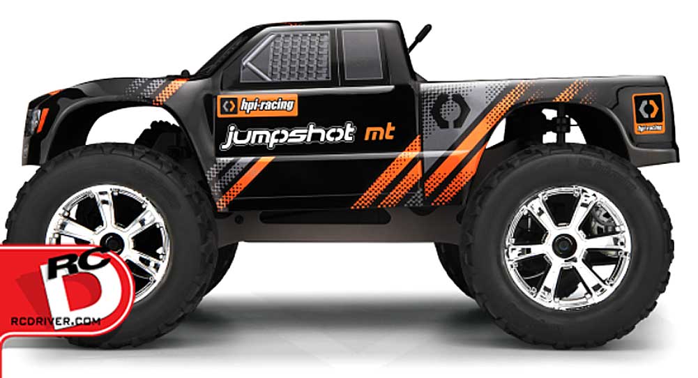 HPI has released a new 1/10 Monster Truck based after it’s extremely successful Savage. The Jumpshot MT uses the same TVP (Twin Vertical Plate) chassis design as the Savage, keeping all the vital components tucked safely between the plates. The Jumpshot comes with a waterproof servo and ESC as well as a waterproof box for the receiver. A 2.4GHz radio system is standard and the MT can accept either a 6-cell NiMh or 2S LiPo battery.