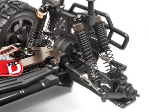 The #MV12623 Strada Red MT has a more aggressive and chunkier pick-up truck body than the XT version, and keeps the big front bumper. It also has larger tires that are more suitable to the street, so it’s perfect for parking lot bashing as well as driving on short grass!The Strada Red MT also features 2 shocks at each corner, for a total of 8 shocks – perfect for that cool monster truck look!