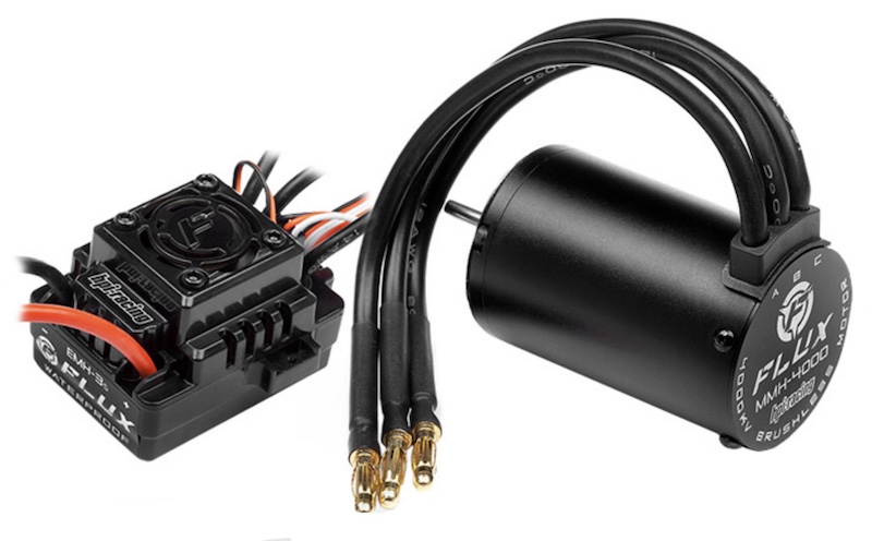 The fan-cooled Flux power system is waterproof, sensorless, and 3S-ready with a 4000kV motor.