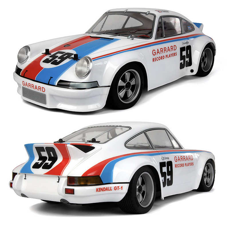 HPI’s shaft-drive sport tourer can now be had with classic 911 Carrera curves in two paint schemes, rolling out on Fuchs replica wheels with Flux brushless power. Deeply offset wheels deliver 200mm track width to fill out the RSR’s signature flared fenders, and with the included 3S-rated speed control and 4000kV motor, HPI claims 70+ mph – nice. You can get the full details from HPI here, but in the meantime, let’s check out the pics: