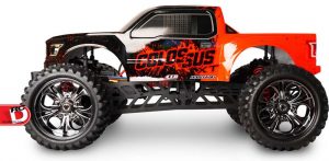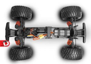 Three fluid-filled, bevel gear differentials (F/C/R) combine to harness the massive horsepower available to the Colossus XT, while 6mm center driveshafts and 8mm dogbones and CVD’s allow the truck to tackle terrain that would crush other monster trucks.