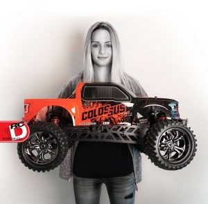 The Colossus XT is the latest evolution of massive electric-powered monster truck design. CEN Racing engineers have created a durable, basher-inspired platform that is certain to please the most demanding R/C enthusiast. It all begins with a DVP (Dual Vertical Plate) chassis incorporating robust 3mm anodized alloy side frames mated to an optimized gearbox and drivetrain that include oversized driveshafts, dogbones, axles, front CVD joints and hardware to deliver maximum durability, performance and ease of maintenance. The oversized aluminum coil-over shocks are coupled to a race-inspired suspension package that dominates the toughest terrain or most intimidating jump. The huge, high-grip tires are factory assembled and mounted to strong and stylish black chrome wheels that accent the aggressive stance and appearance of the pre-painted and decorated body shell. The heart of any monster truck is the motor, electronic speed control and servo. The Colossus XT excels in this category by offering as standard equipment a Hobbywing 150A ESC with reverse, a 1450kv sensorless brushless motor, and a powerful Savox steering servo. Reliable, interference-free control is provided by the 2.4GHz pistol-grip transmitter with digital trims, ATV, and a bonus third channel for lights or other user-installed options. The receiver is protected from dust, dirt, rocks or moisture by the heavy-duty, sealed radio box that is easily accessed by simple removal of two clips, and the battery tray includes oversized hook and loop retainers to keep batteries safe and securely mounted even under the most extreme driving conditions. Best of all, this beast is capable of extreme speeds and performance utilizing two 2S LiPo packs! Sure, it’s possible to use two 3S packs in the Colossus XT without concern since the drivetrain, ESC, and motor are perfectly capable of handling that much energy. But are you?