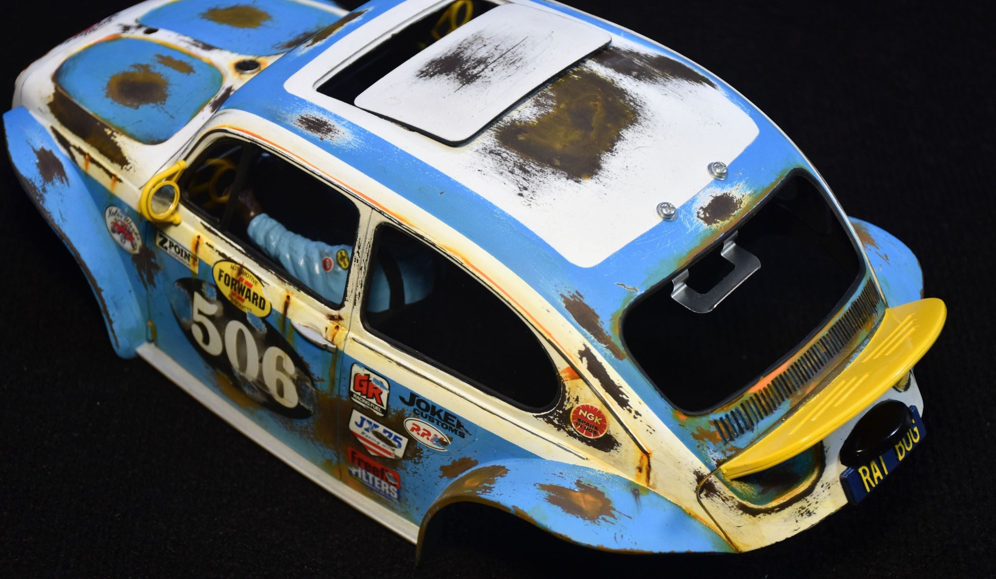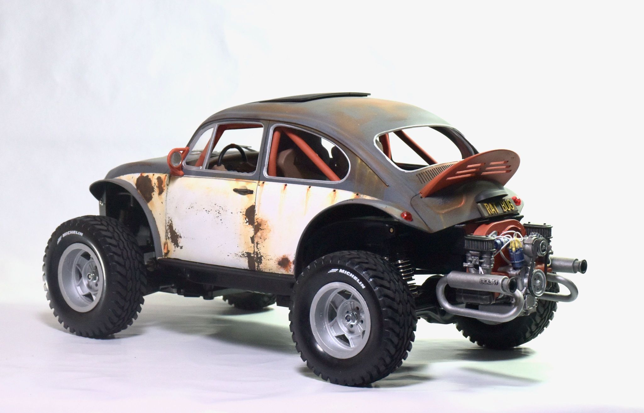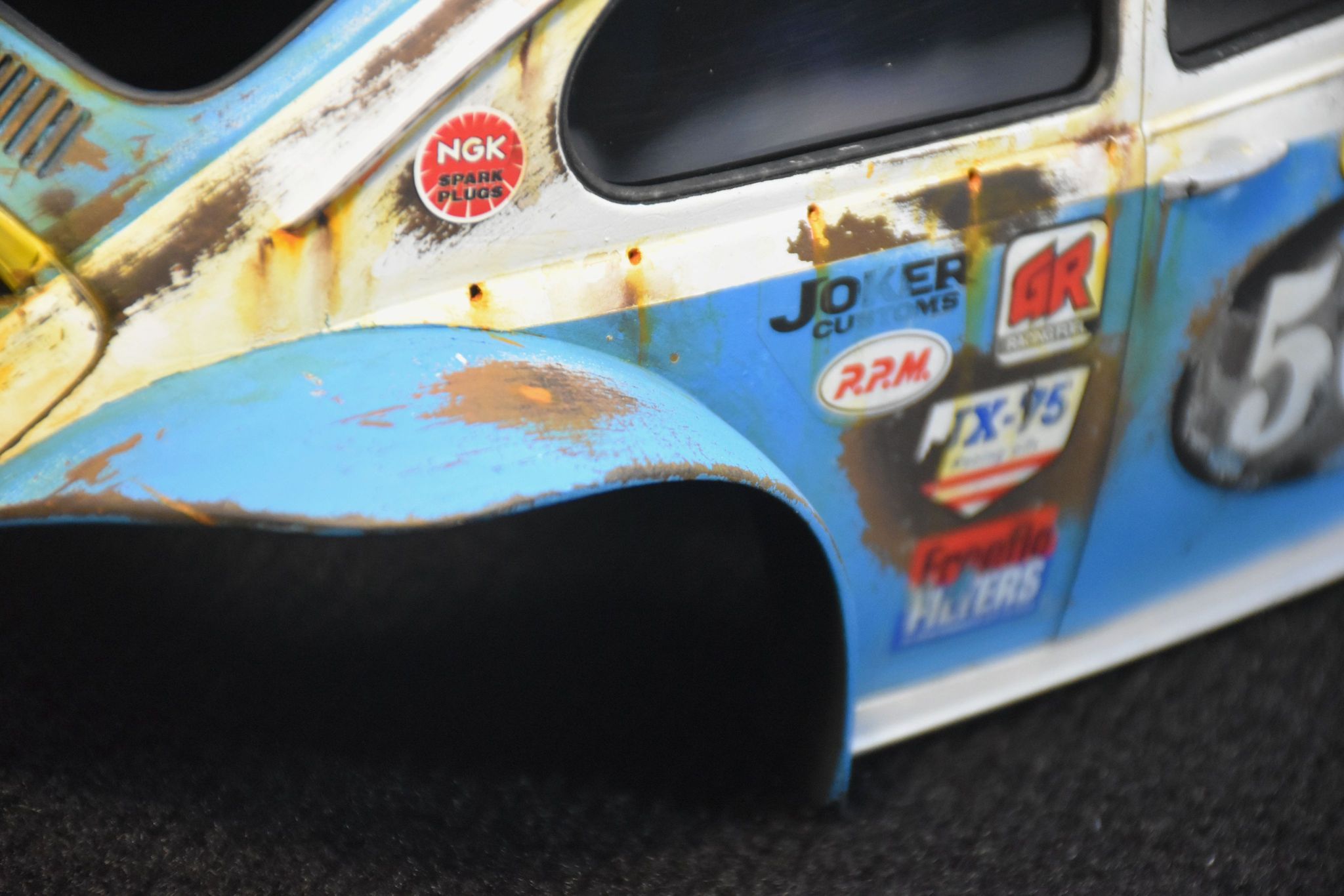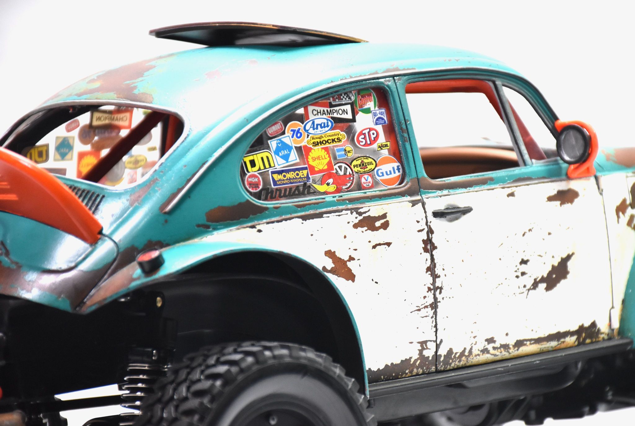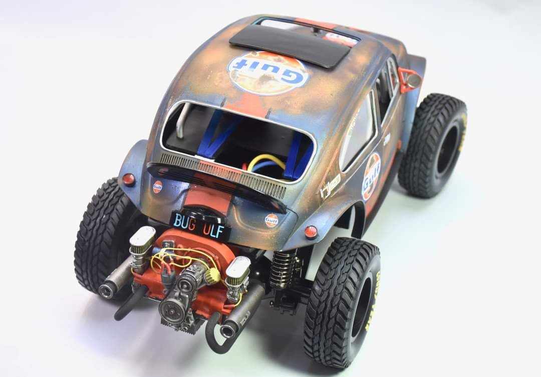 Along with the CC-01 and CC-02 chassis based Scorcher builds, Bruno has made versions using the stock Tamiya Sand Scorcher chassis. Following are some excellent examples of those builds which really highlight Bruno’s extraordinary skill in creating realistic weathered bug bodies. This rusty/patina look has become his main painting style which is based on full-size rat rods. Bruno’s painting abilities can be partially credited to his family. He grew up surrounded by paint brushes with both his father and grandfather being painters. This instilled in Bruno that the brush is inseparable from the painter. Therefore, Bruno uses brushes a lot with the chipping technique to create his RC masterpieces. This is something that he picked up by watching videos and reading about the methods used by master military model builders and he is still learning.