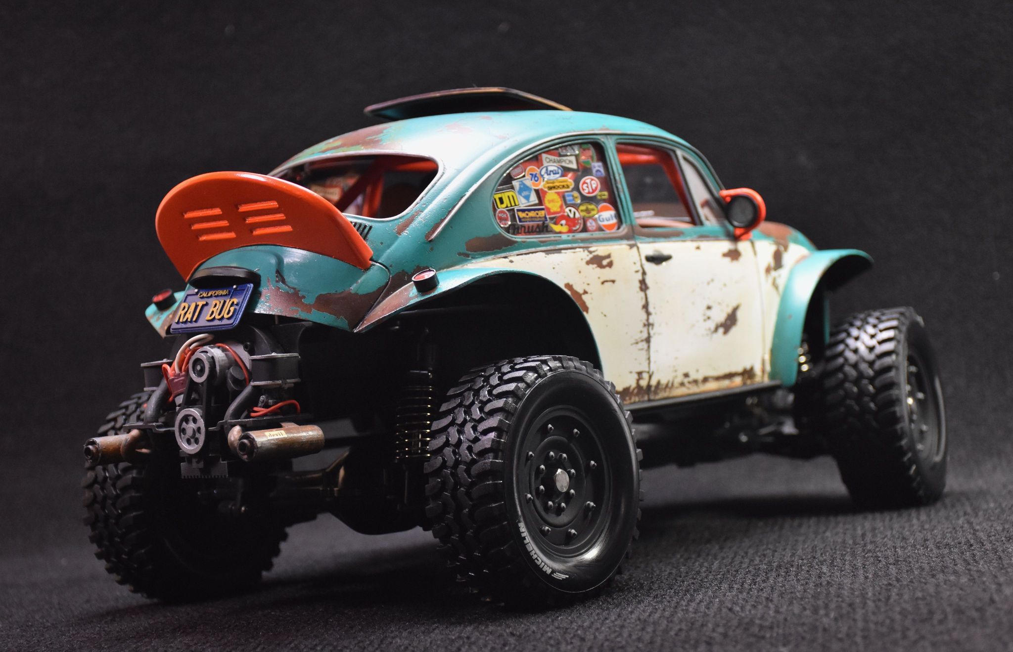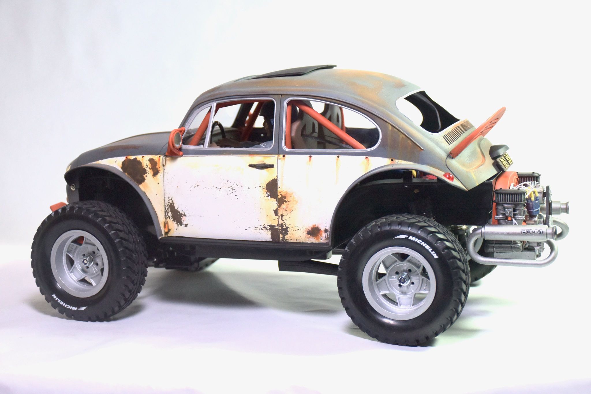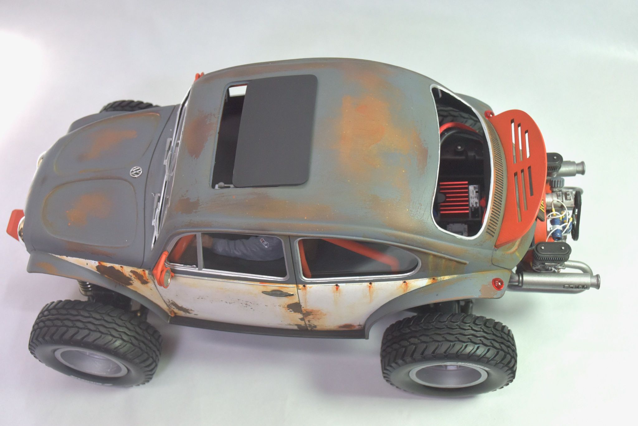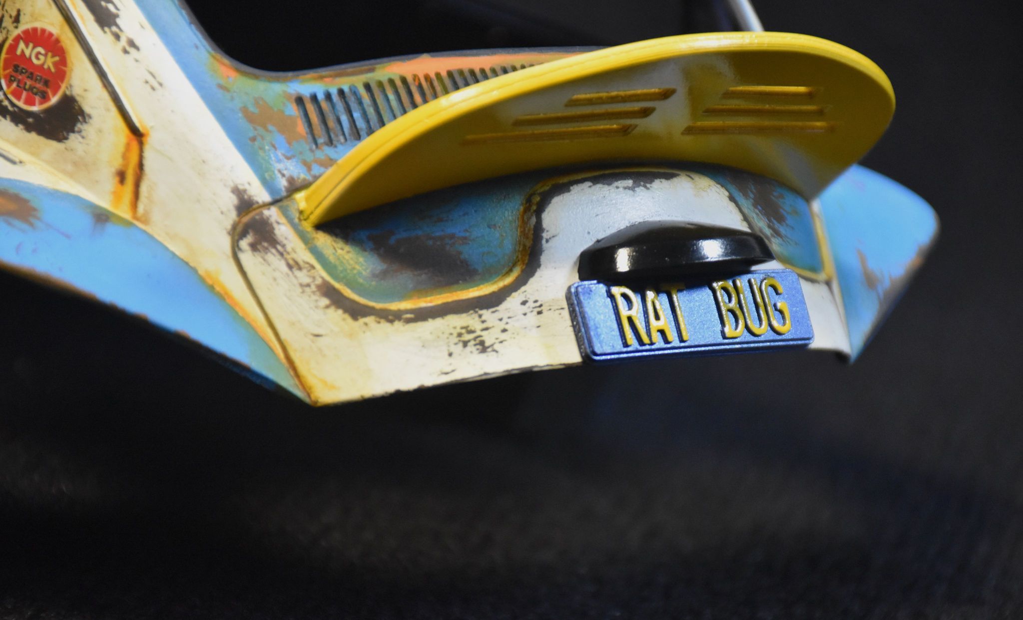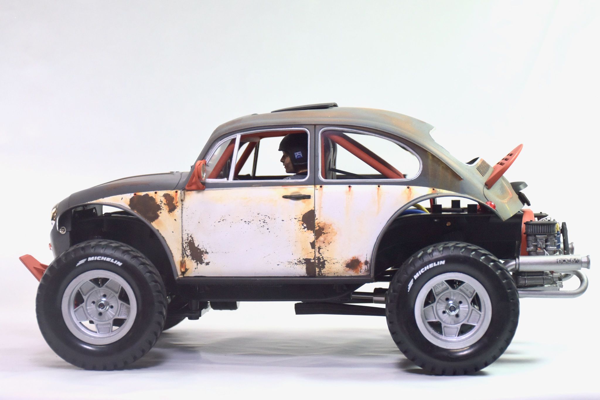 Along with the CC-01 and CC-02 chassis based Scorcher builds, Bruno has made versions using the stock Tamiya Sand Scorcher chassis. Following are some excellent examples of those builds which really highlight Bruno’s extraordinary skill in creating realistic weathered bug bodies. This rusty/patina look has become his main painting style which is based on full-size rat rods. Bruno’s painting abilities can be partially credited to his family. He grew up surrounded by paint brushes with both his father and grandfather being painters. This instilled in Bruno that the brush is inseparable from the painter. Therefore, Bruno uses brushes a lot with the chipping technique to create his RC masterpieces. This is something that he picked up by watching videos and reading about the methods used by master military model builders and he is still learning.