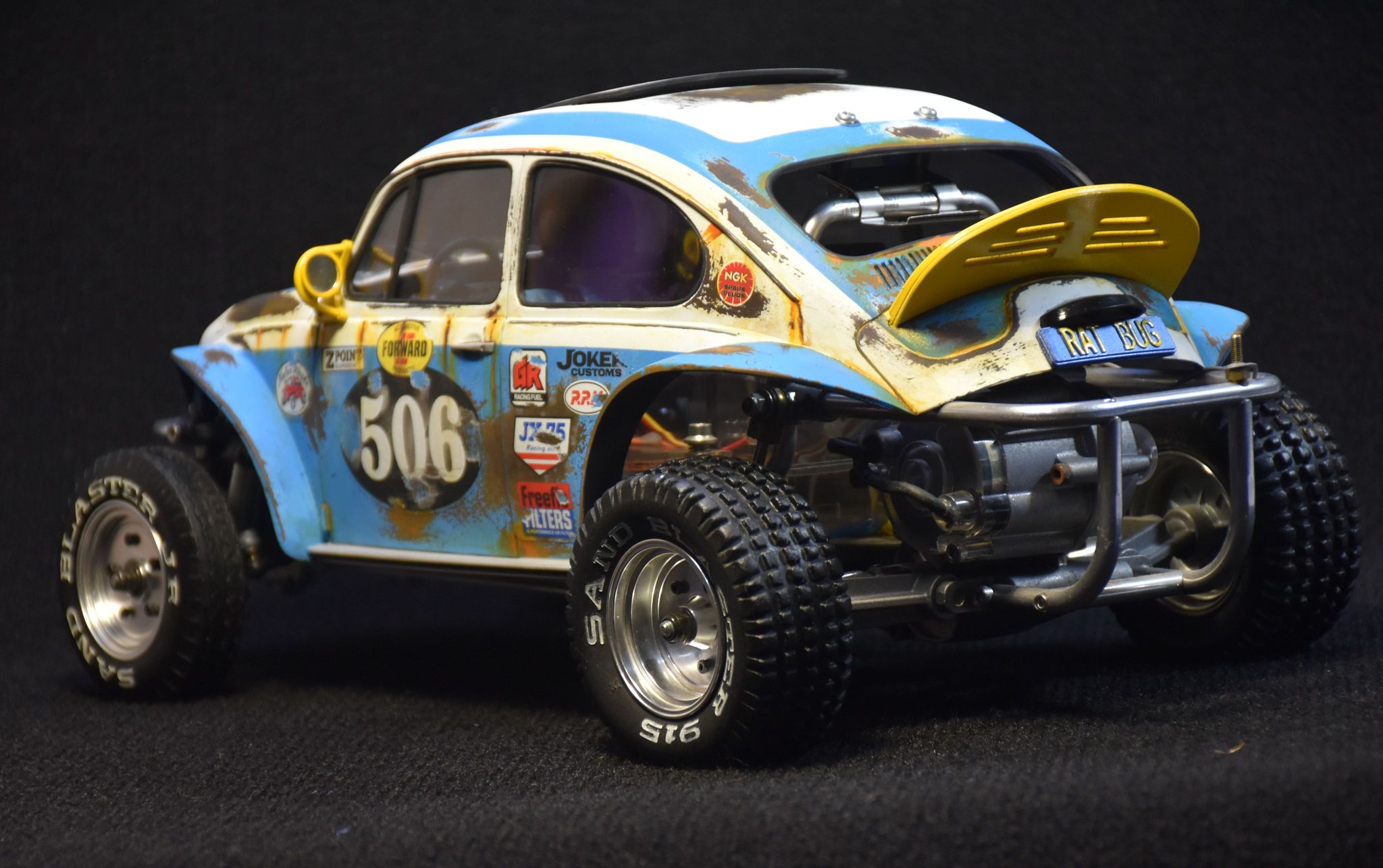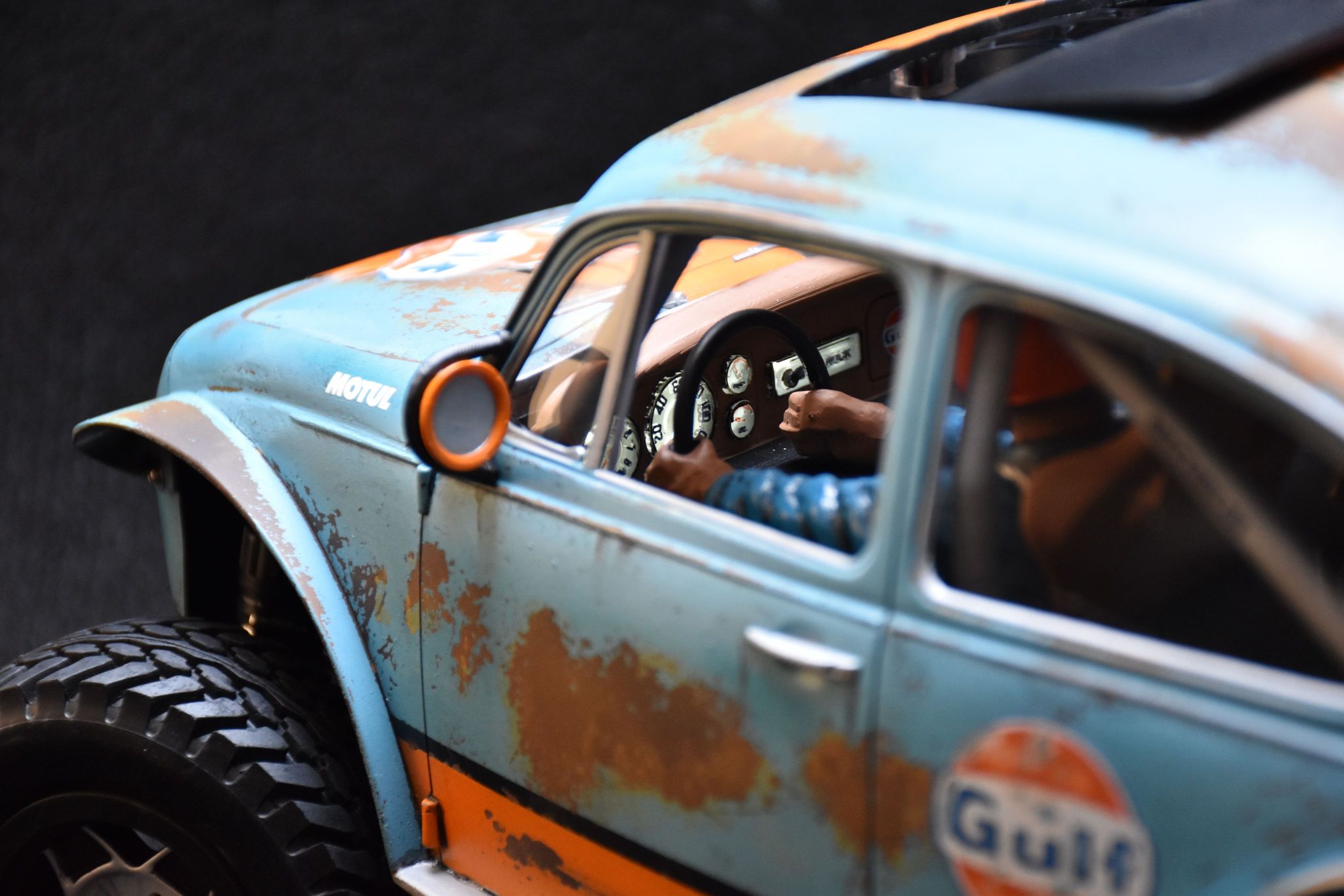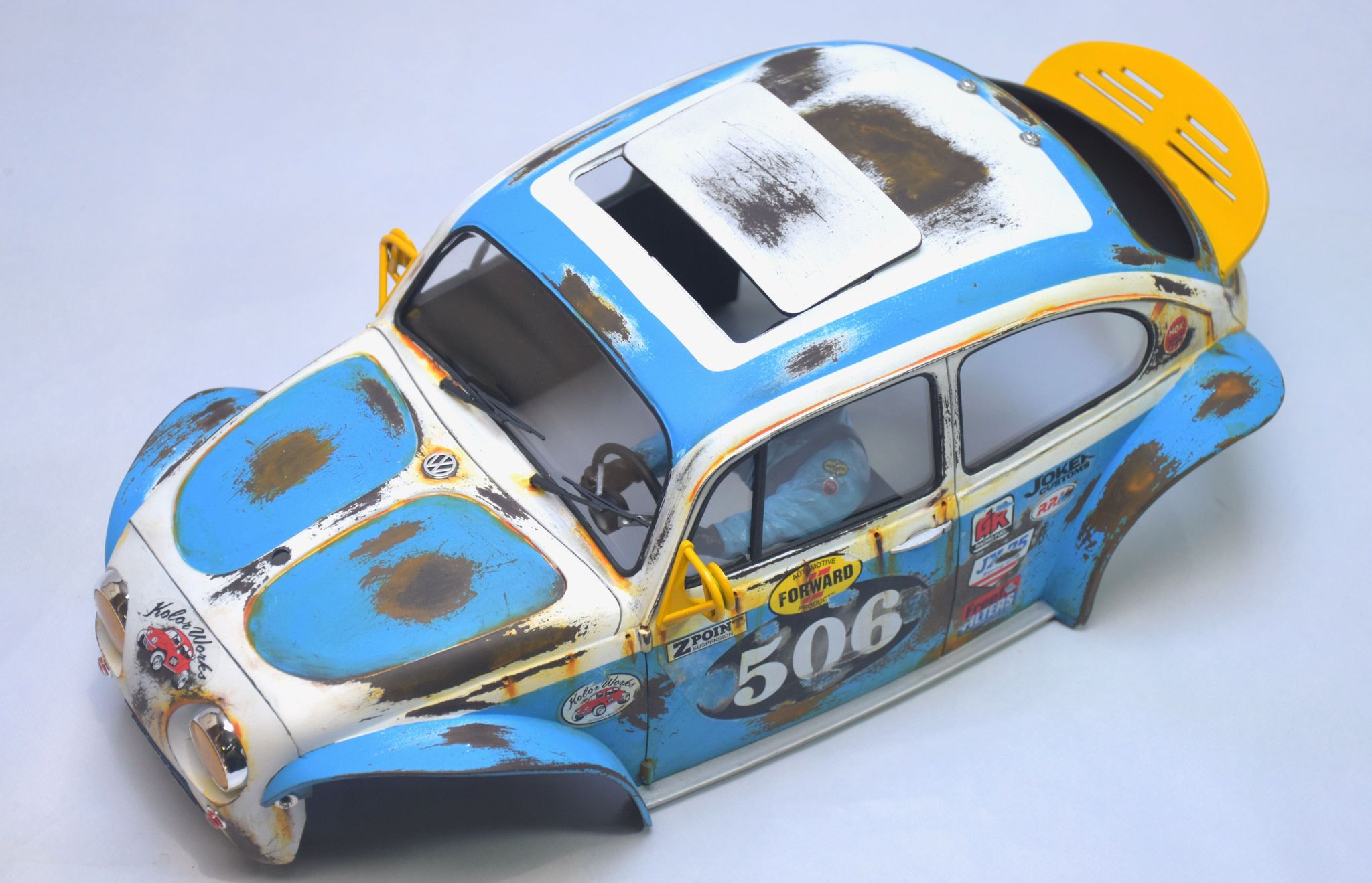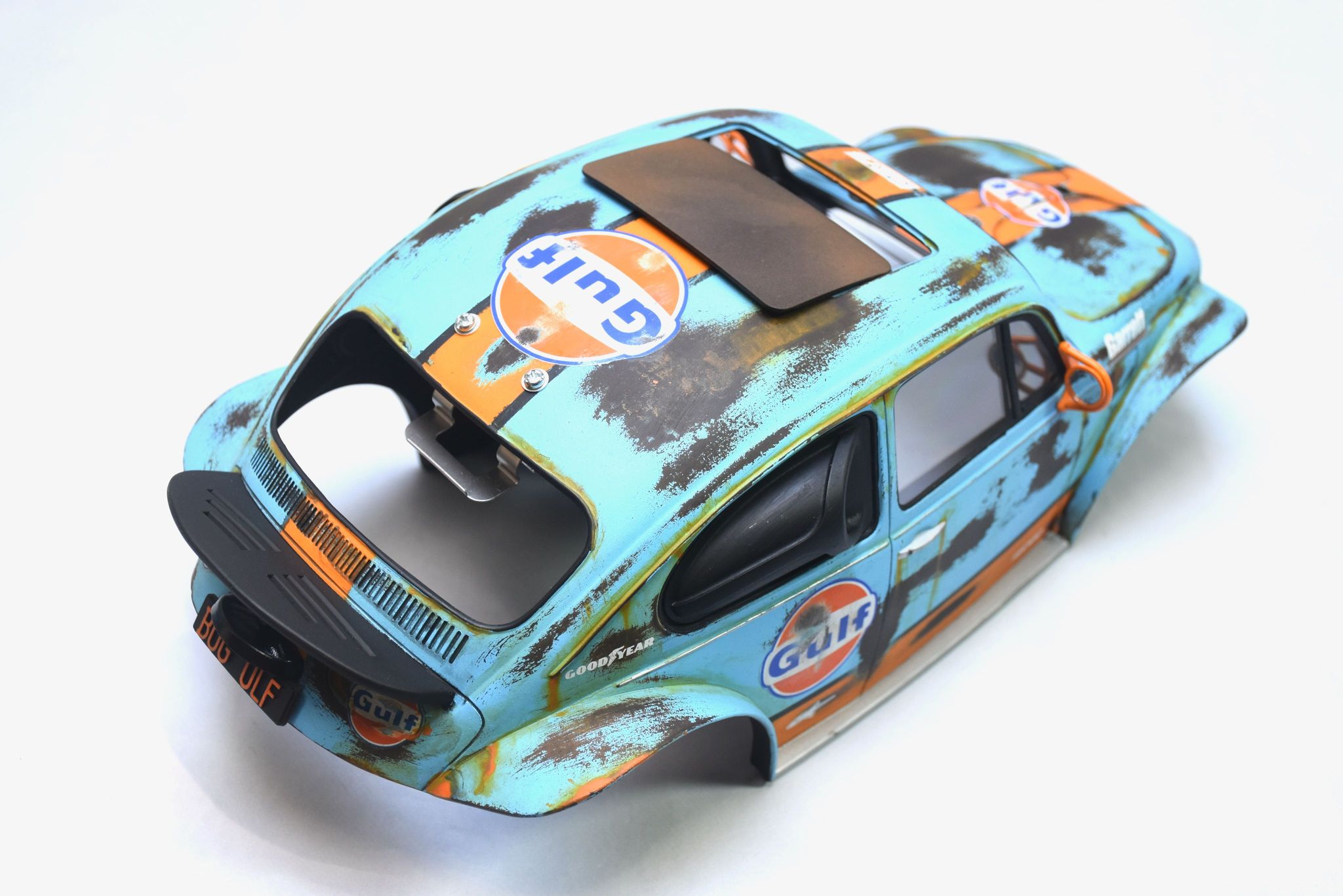 Along with the CC-01 and CC-02 chassis based Scorcher builds, Bruno has made versions using the stock Tamiya Sand Scorcher chassis. Following are some excellent examples of those builds which really highlight Bruno’s extraordinary skill in creating realistic weathered bug bodies. This rusty/patina look has become his main painting style which is based on full-size rat rods. Bruno’s painting abilities can be partially credited to his family. He grew up surrounded by paint brushes with both his father and grandfather being painters. This instilled in Bruno that the brush is inseparable from the painter. Therefore, Bruno uses brushes a lot with the chipping technique to create his RC masterpieces. This is something that he picked up by watching videos and reading about the methods used by master military model builders and he is still learning.
