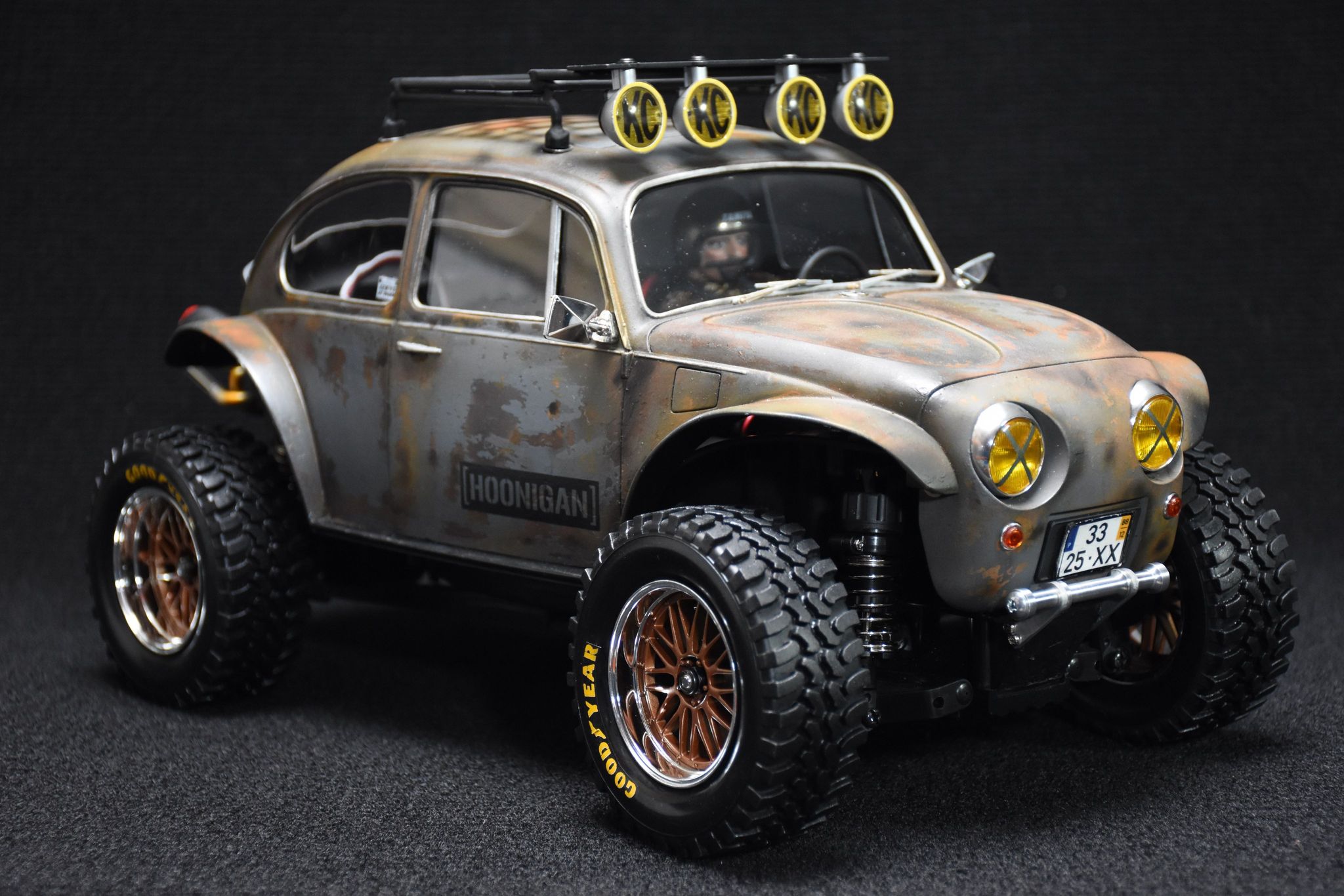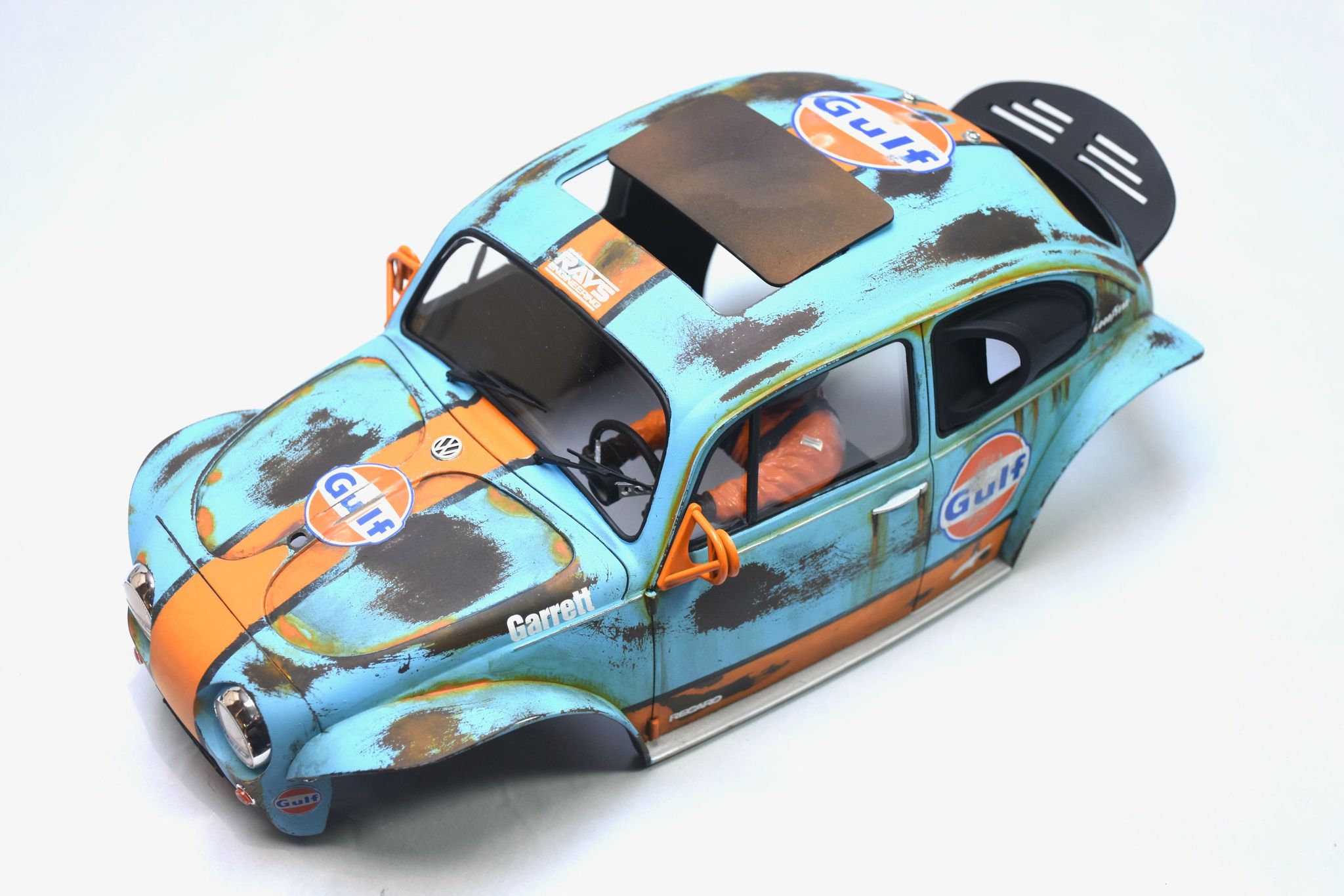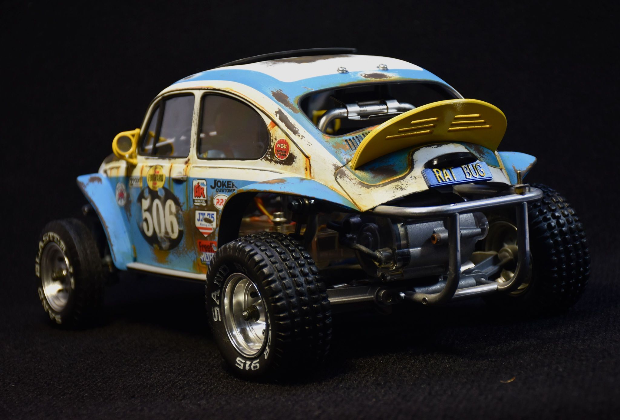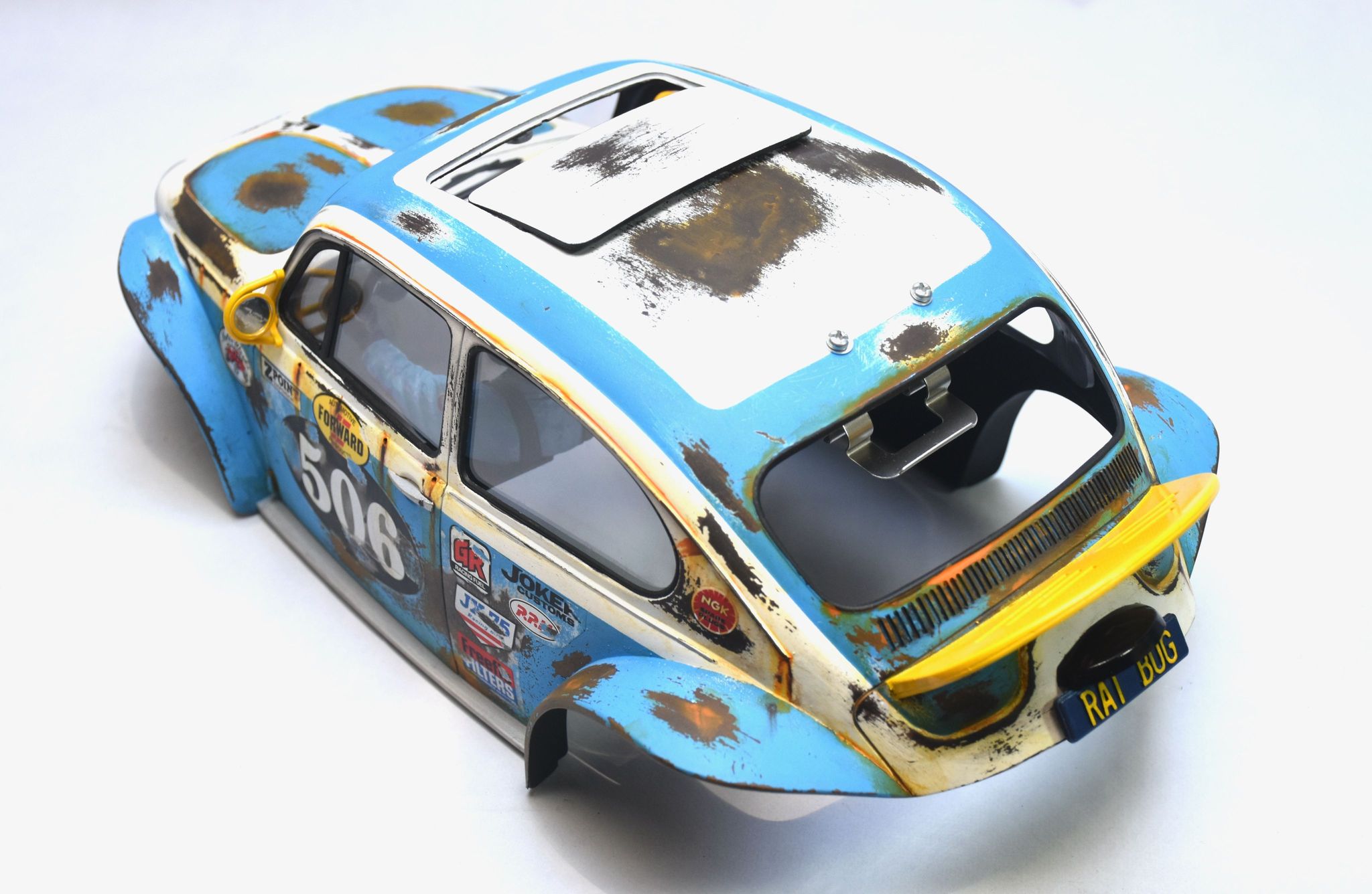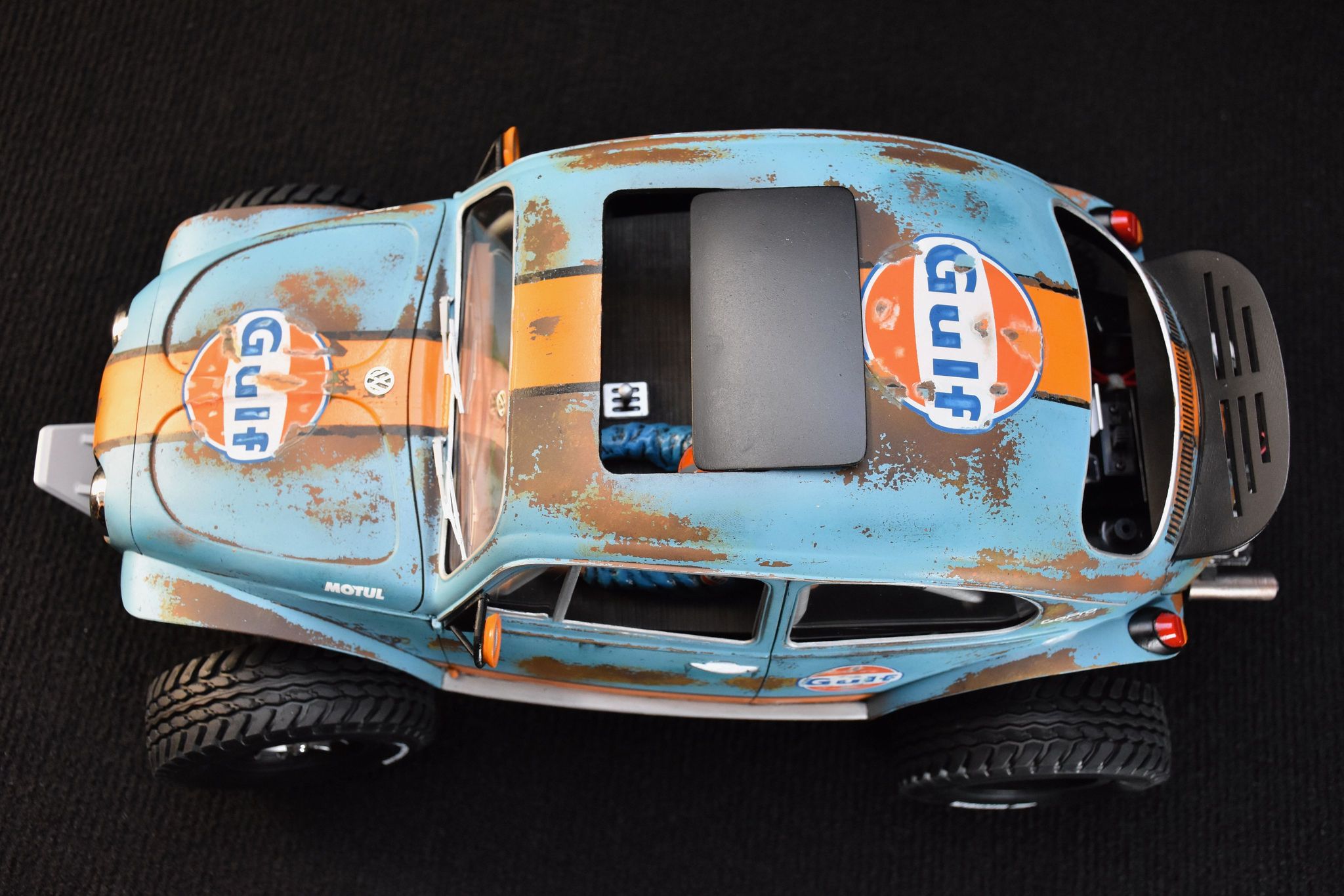 Along with the CC-01 and CC-02 chassis based Scorcher builds, Bruno has made versions using the stock Tamiya Sand Scorcher chassis. Following are some excellent examples of those builds which really highlight Bruno’s extraordinary skill in creating realistic weathered bug bodies. This rusty/patina look has become his main painting style which is based on full-size rat rods. Bruno’s painting abilities can be partially credited to his family. He grew up surrounded by paint brushes with both his father and grandfather being painters. This instilled in Bruno that the brush is inseparable from the painter. Therefore, Bruno uses brushes a lot with the chipping technique to create his RC masterpieces. This is something that he picked up by watching videos and reading about the methods used by master military model builders and he is still learning.