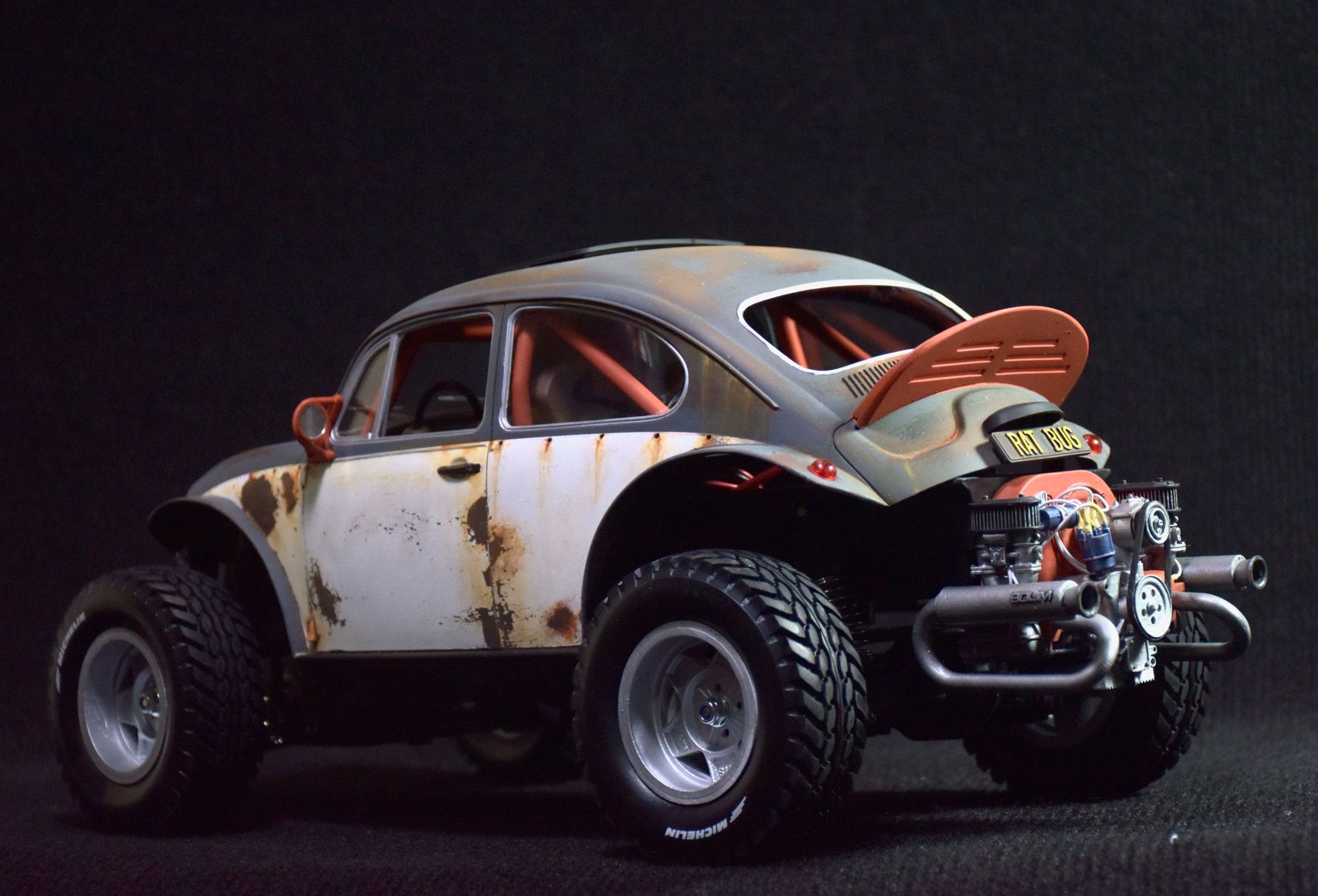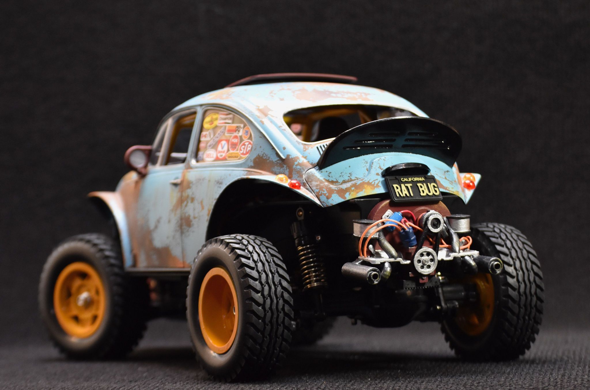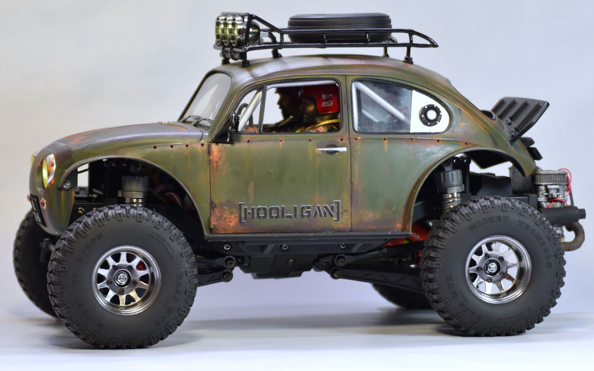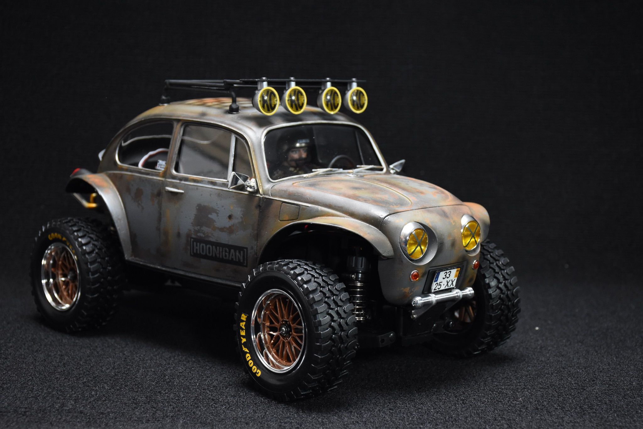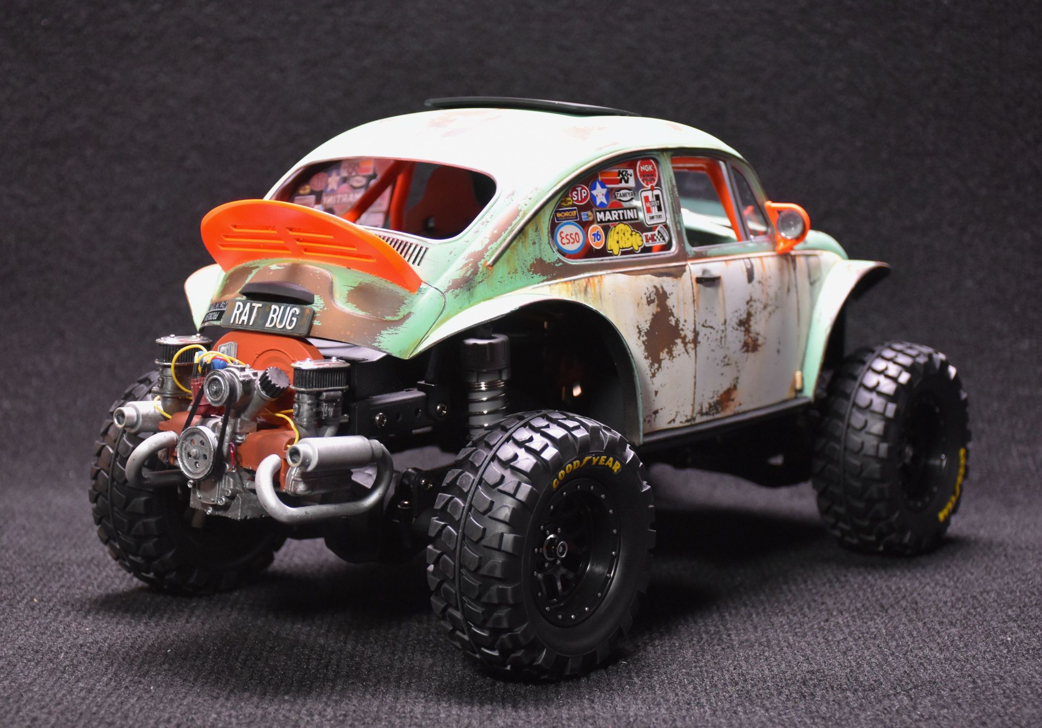 Along with the CC-01 and CC-02 chassis based Scorcher builds, Bruno has made versions using the stock Tamiya Sand Scorcher chassis. Following are some excellent examples of those builds which really highlight Bruno’s extraordinary skill in creating realistic weathered bug bodies. This rusty/patina look has become his main painting style which is based on full-size rat rods. Bruno’s painting abilities can be partially credited to his family. He grew up surrounded by paint brushes with both his father and grandfather being painters. This instilled in Bruno that the brush is inseparable from the painter. Therefore, Bruno uses brushes a lot with the chipping technique to create his RC masterpieces. This is something that he picked up by watching videos and reading about the methods used by master military model builders and he is still learning.
