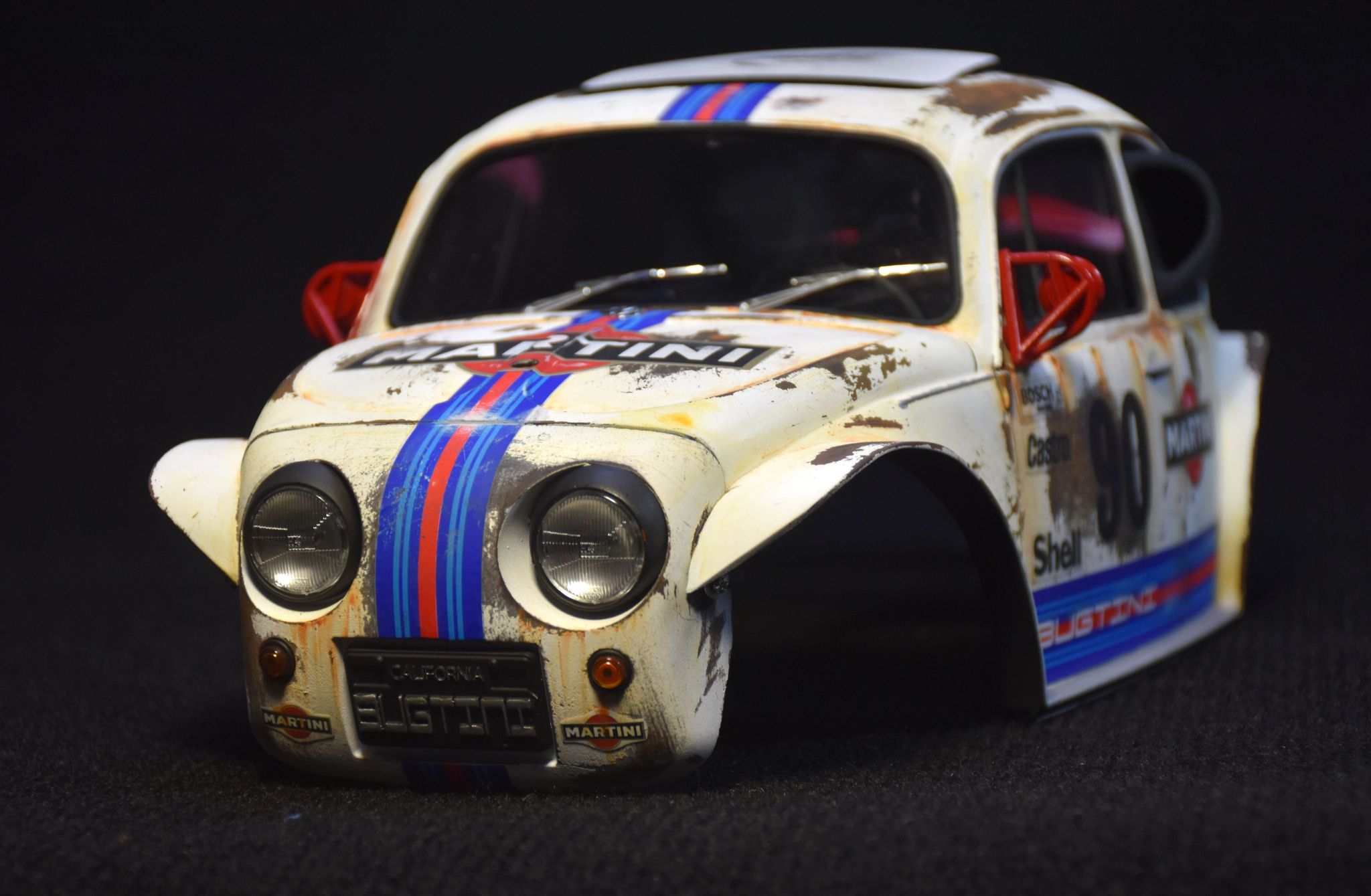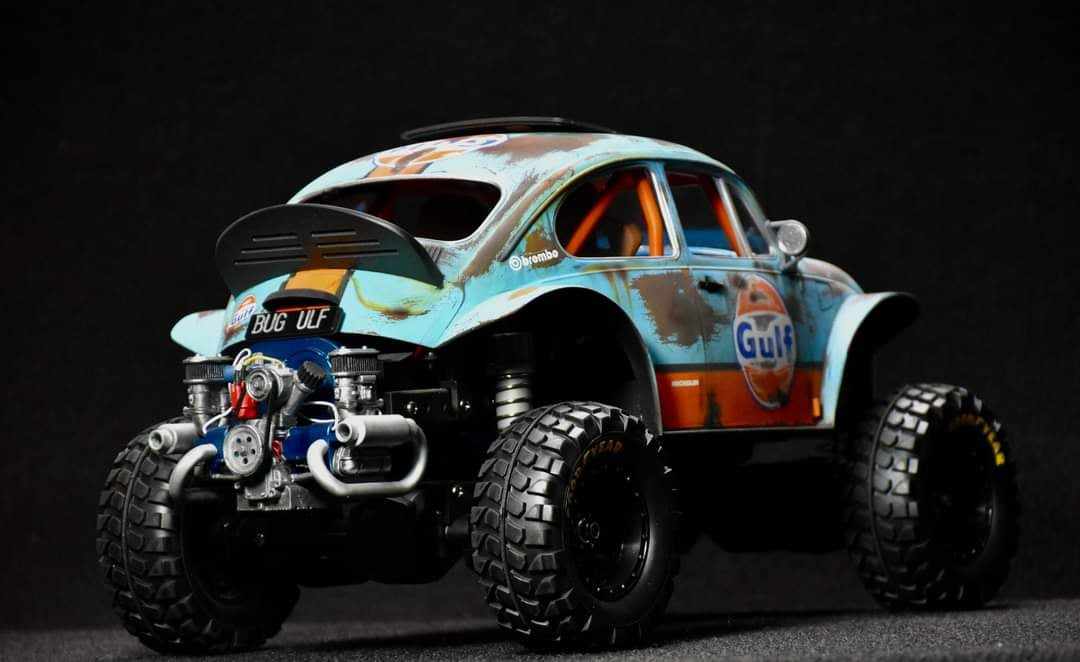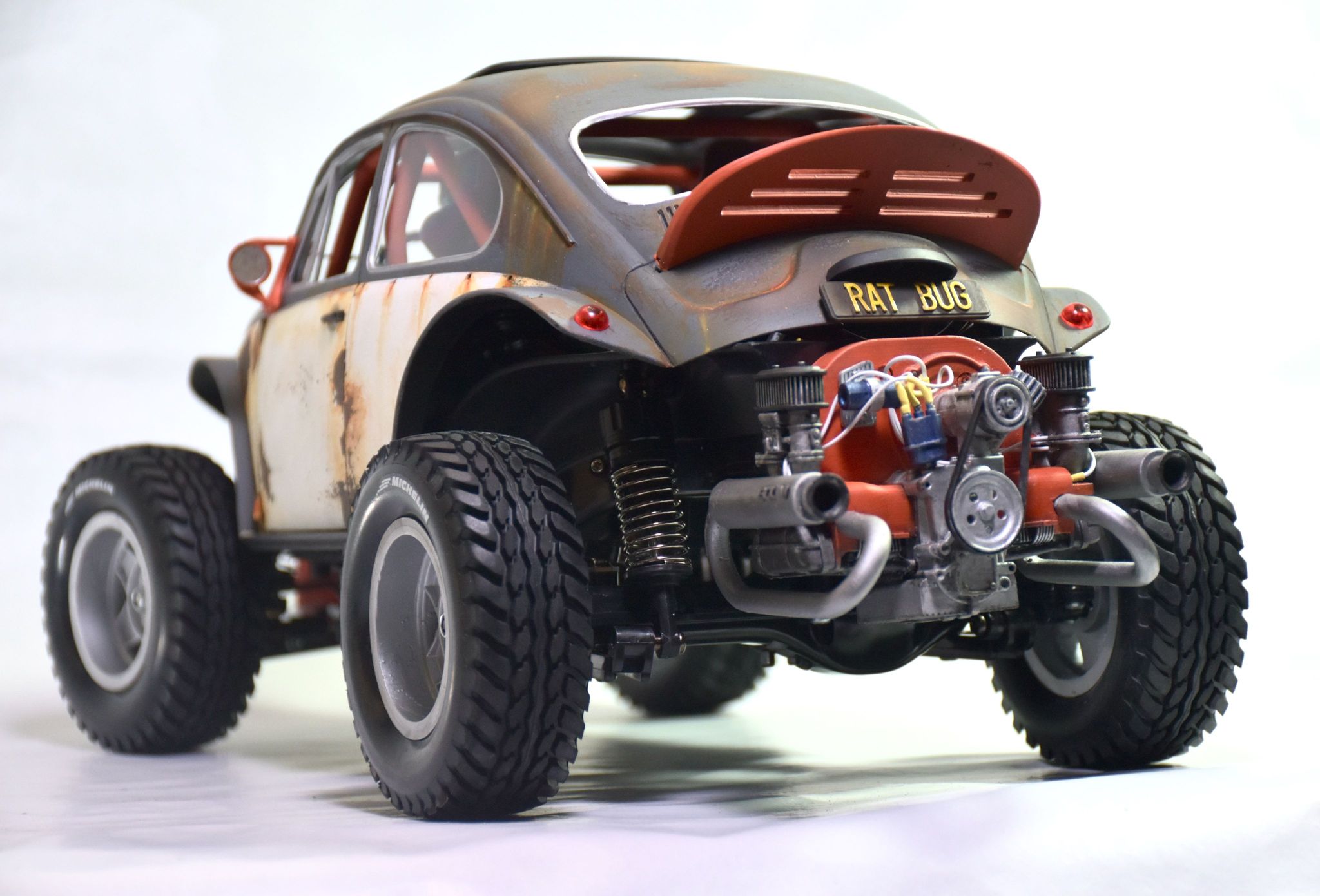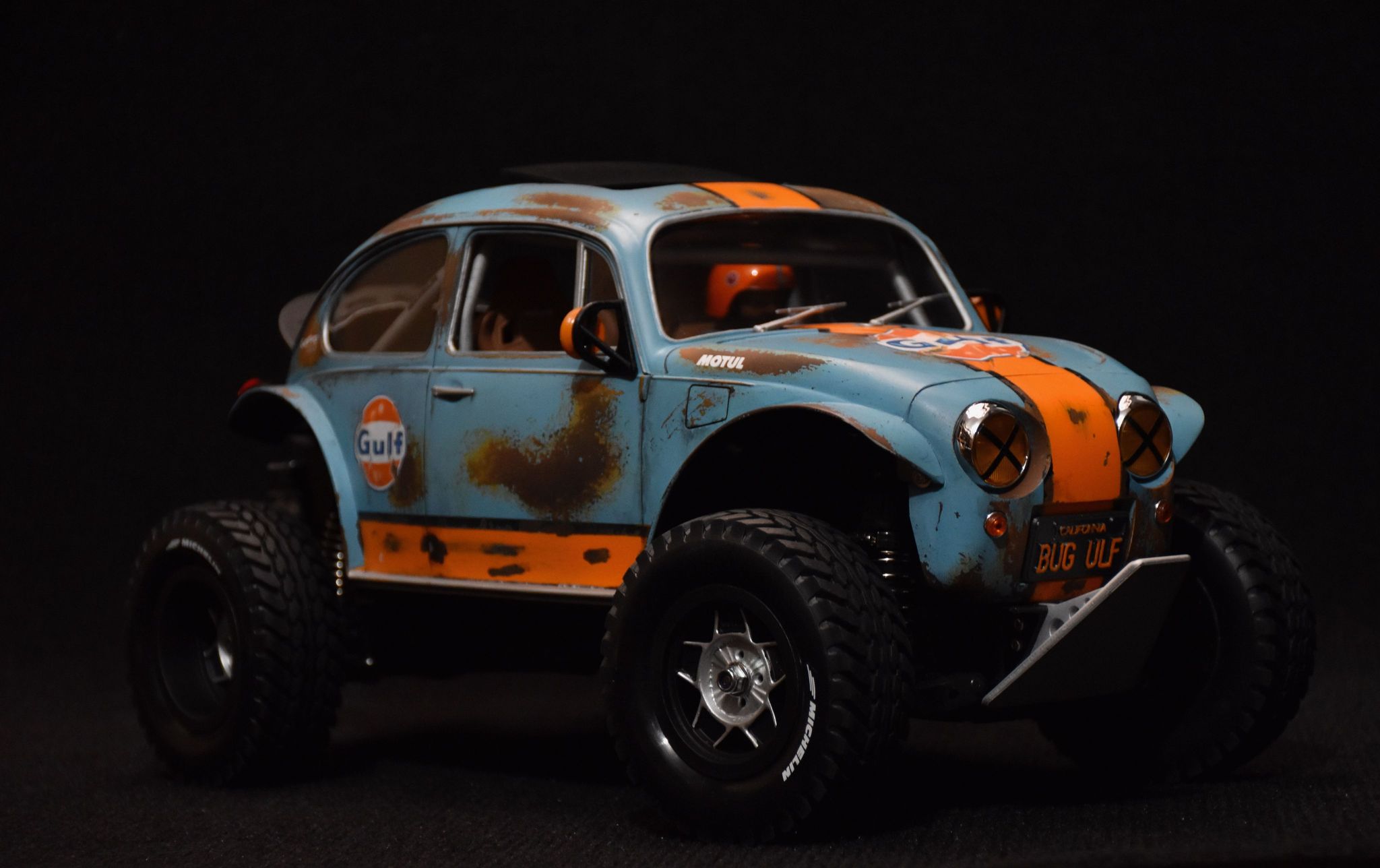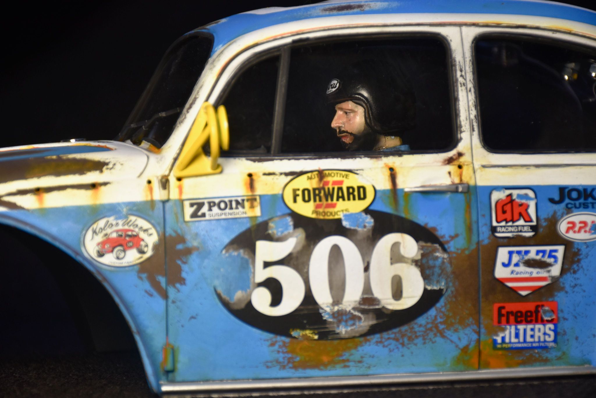Along with the CC-01 and CC-02 chassis based Scorcher builds, Bruno has made versions using the stock Tamiya Sand Scorcher chassis. Following are some excellent examples of those builds which really highlight Bruno’s extraordinary skill in creating realistic weathered bug bodies. This rusty/patina look has become his main painting style which is based on full-size rat rods. Bruno’s painting abilities can be partially credited to his family. He grew up surrounded by paint brushes with both his father and grandfather being painters. This instilled in Bruno that the brush is inseparable from the painter. Therefore, Bruno uses brushes a lot with the chipping technique to create his RC masterpieces. This is something that he picked up by watching videos and reading about the methods used by master military model builders and he is still learning.