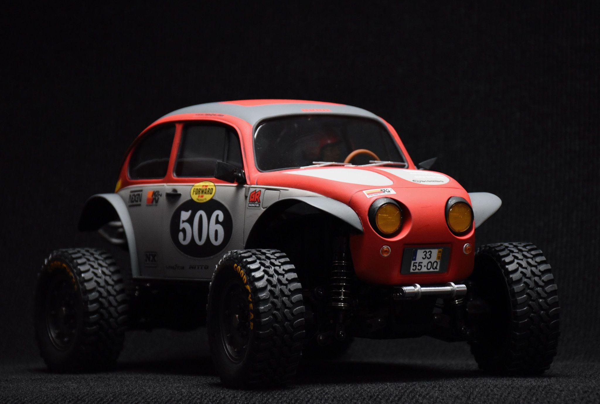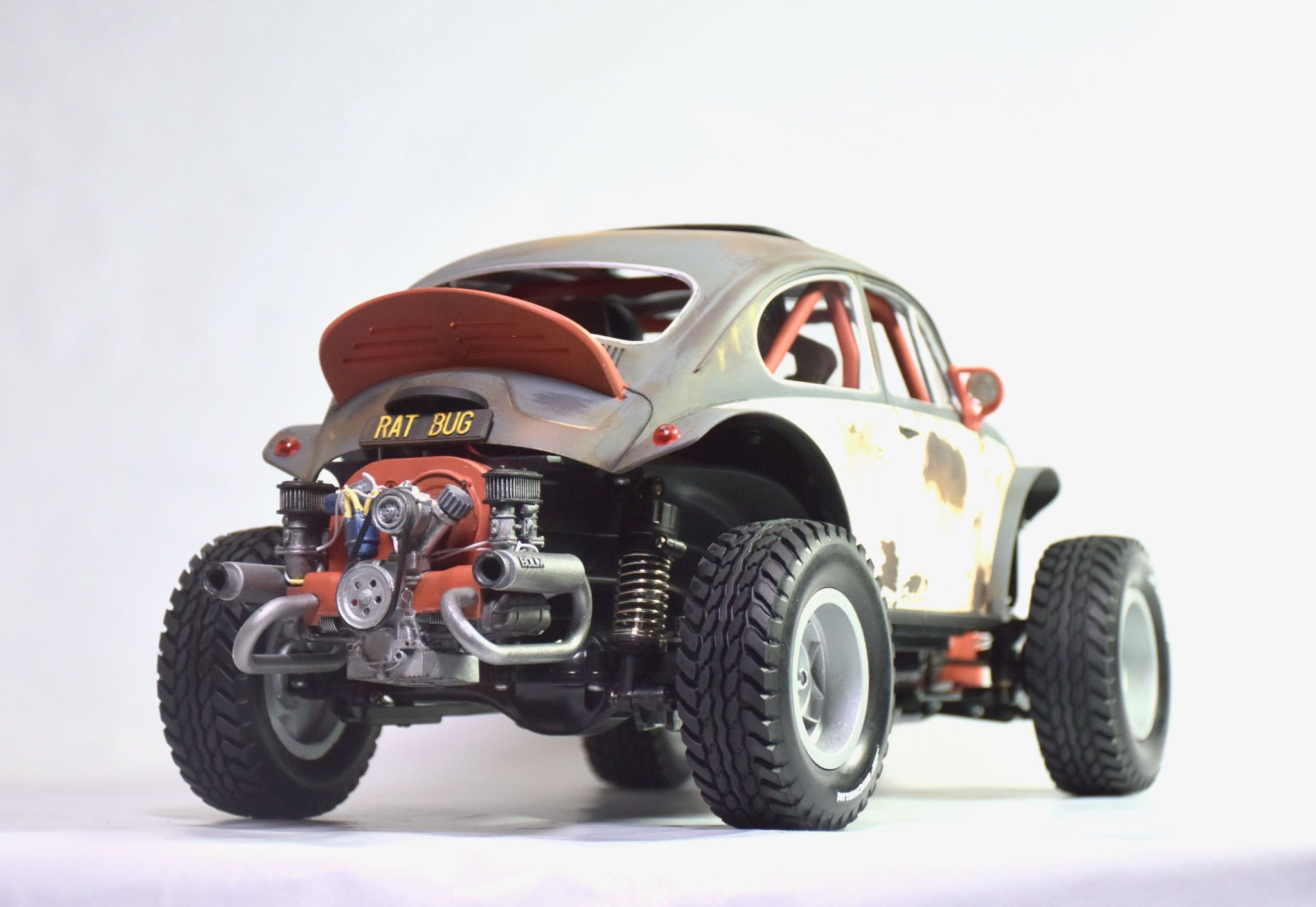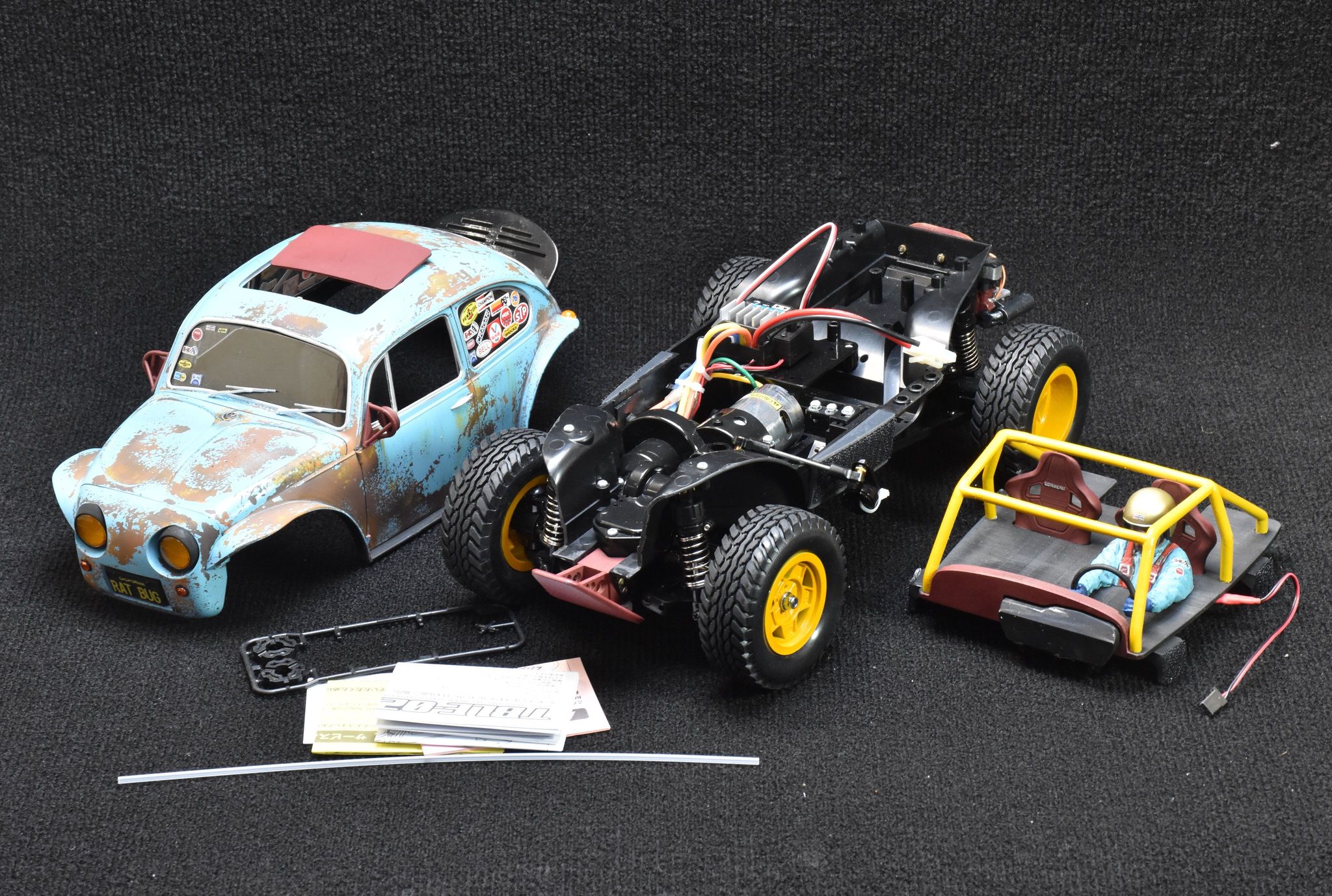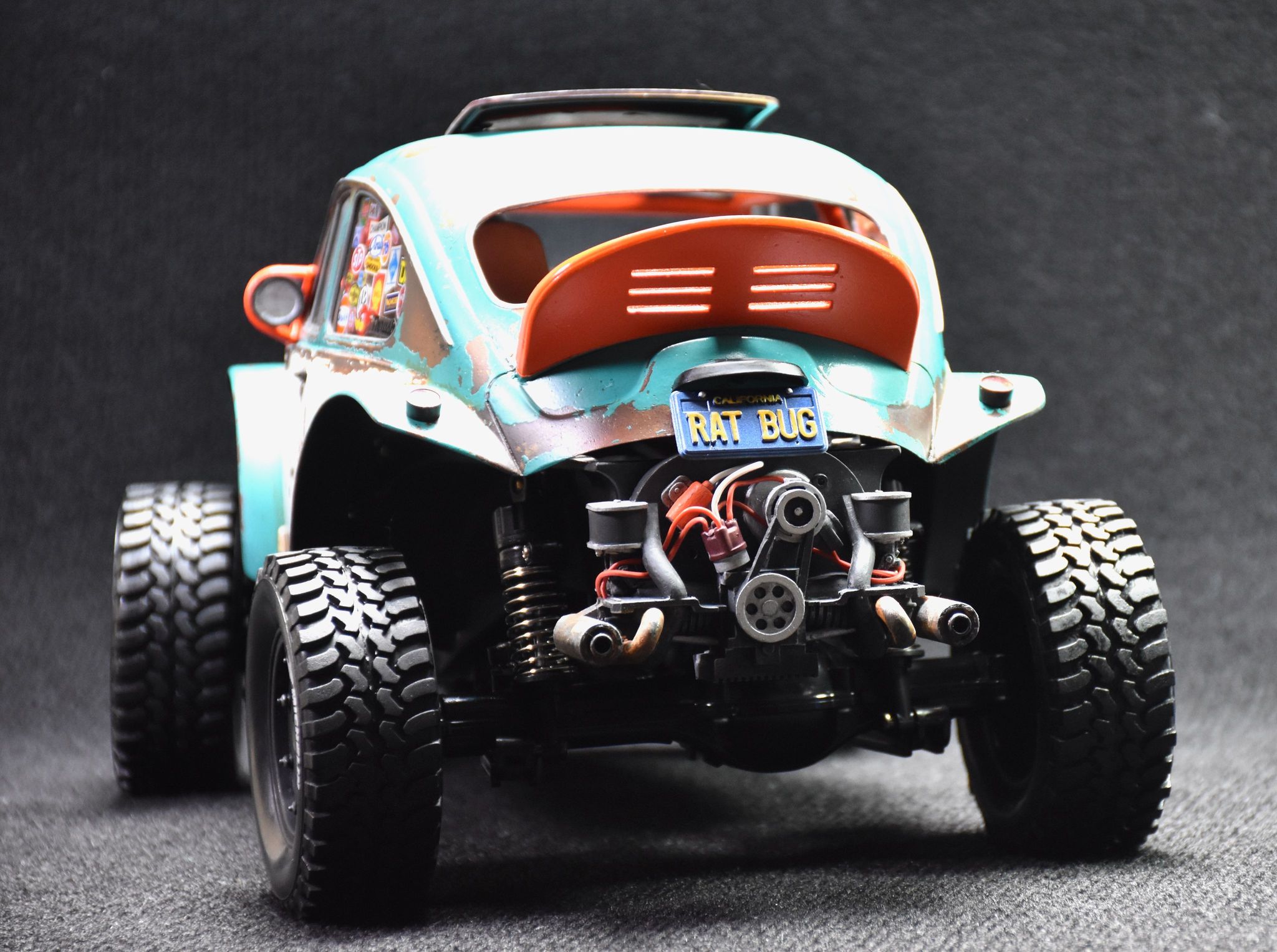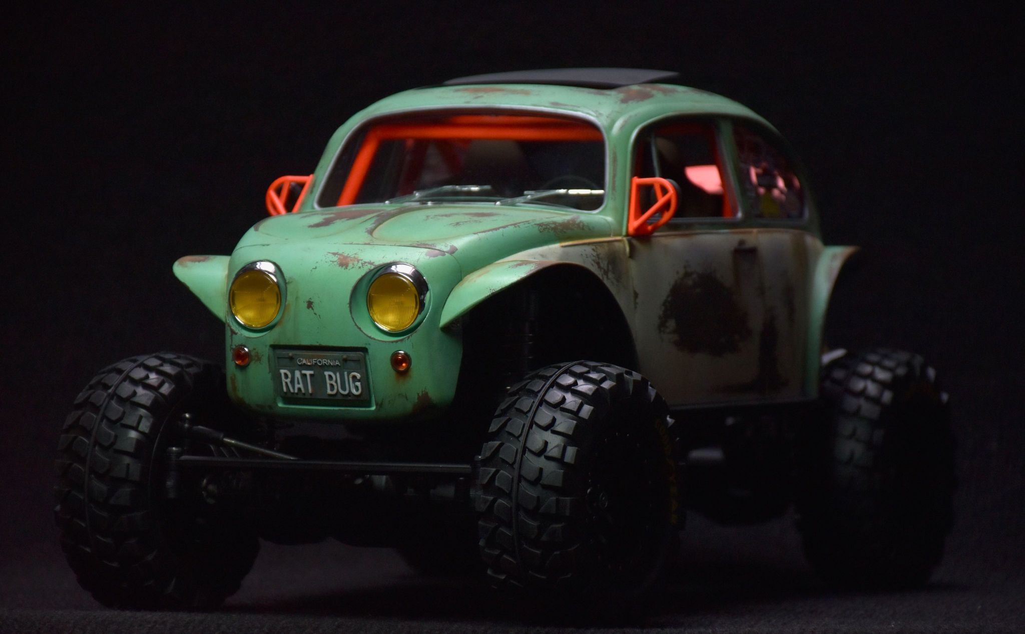 The first Sand Scorcher came out back in 1979 and was then re-released by Tamiya in 2010. The 2010 version is the one that you can still currently buy from Tamiya. It retains the same basic rear-wheel drive 2WD chassis layout as the original and comes with the super-detailed and realistic white polystyrene molded VW bug body. This model realistically reproduces the unique form of the buggy which was seen at the one-make race at the “Baja 1000” in California.