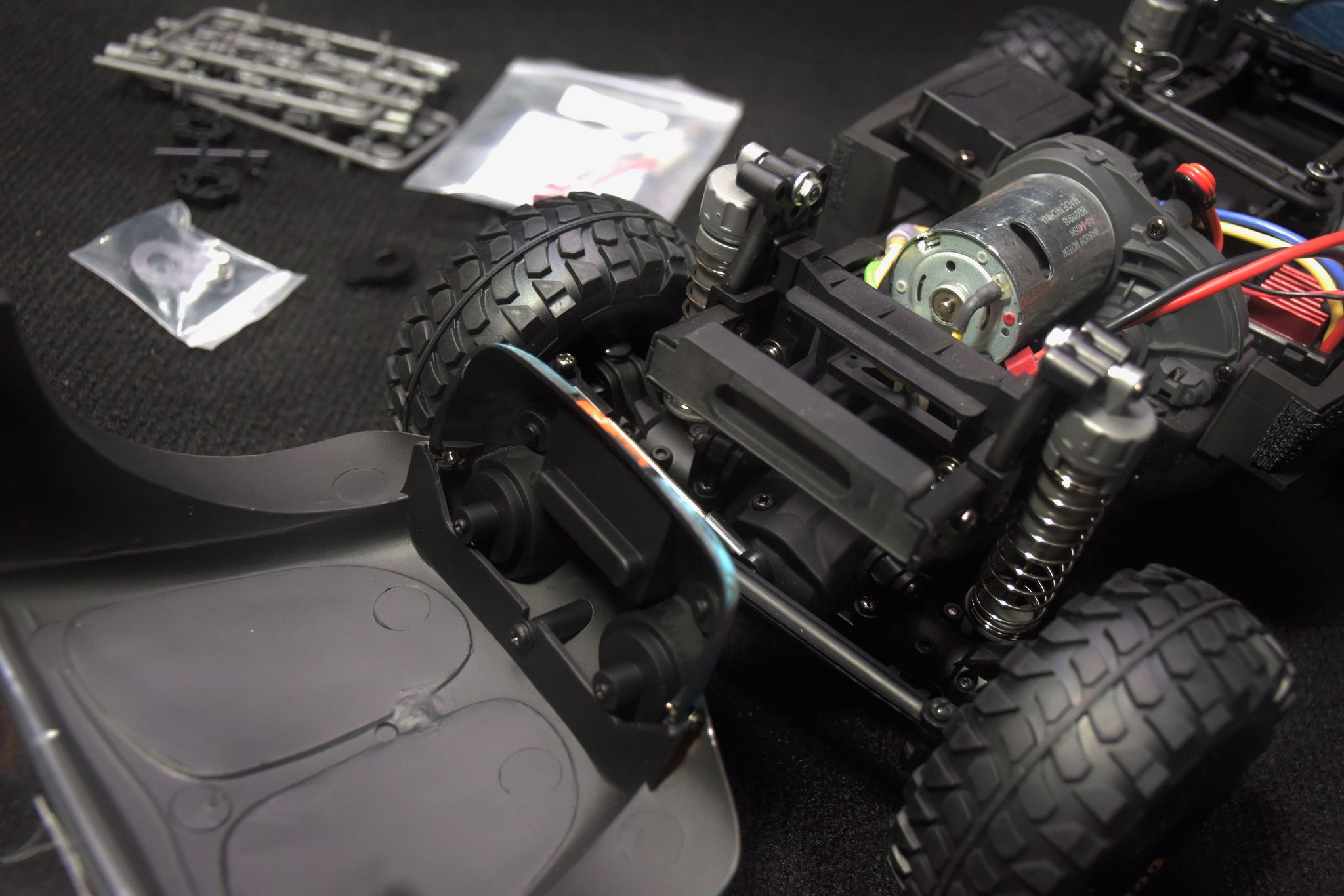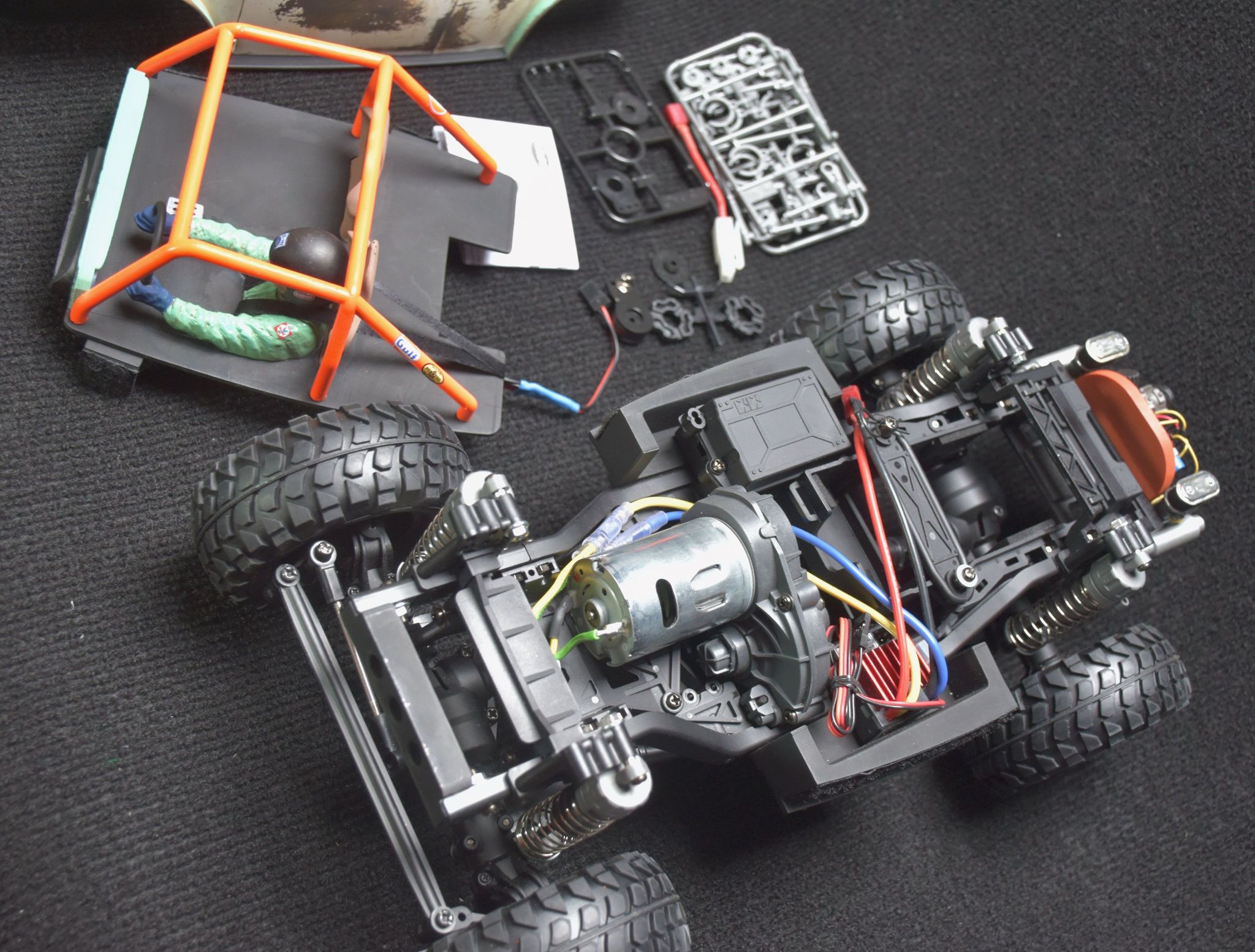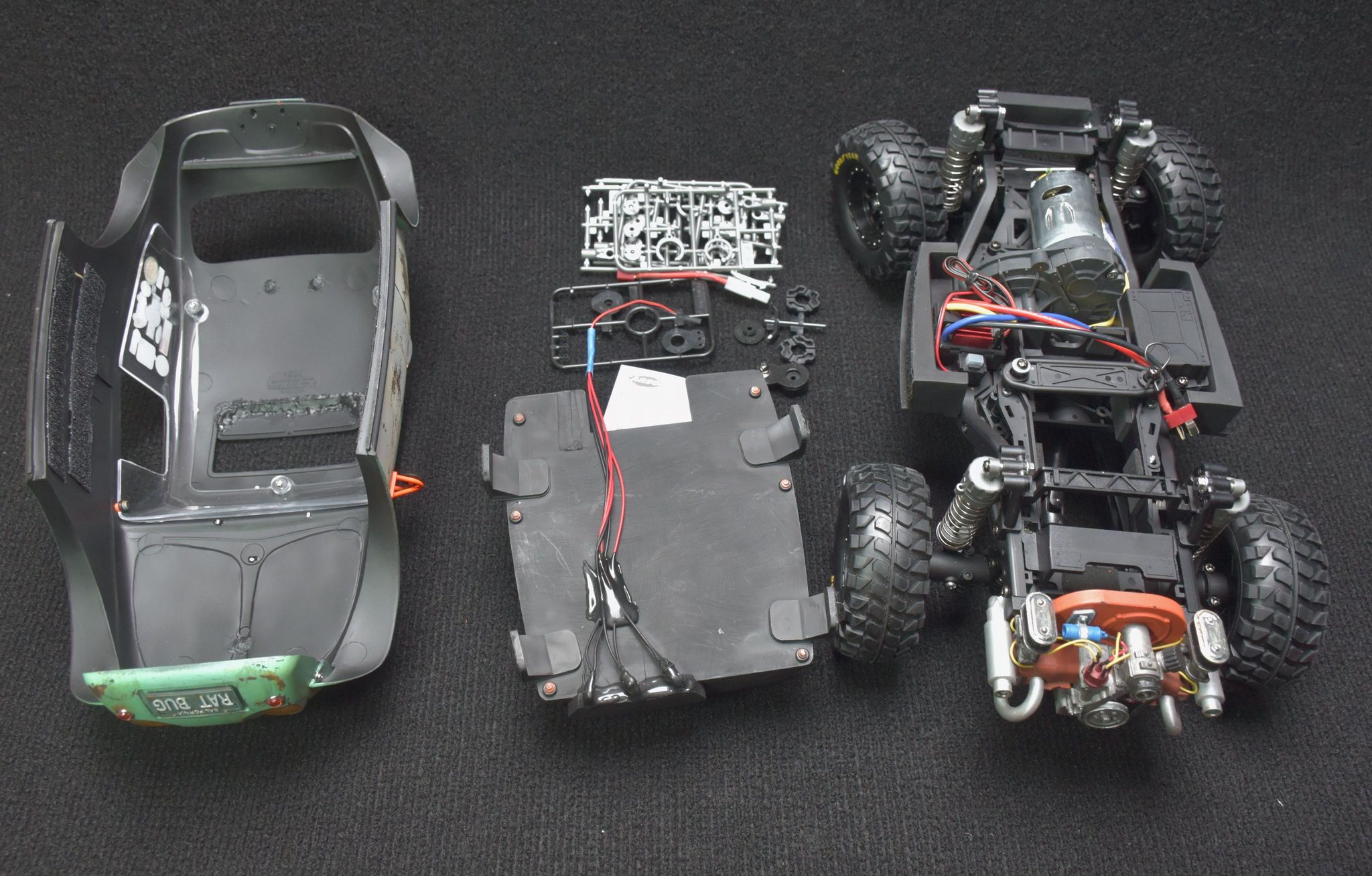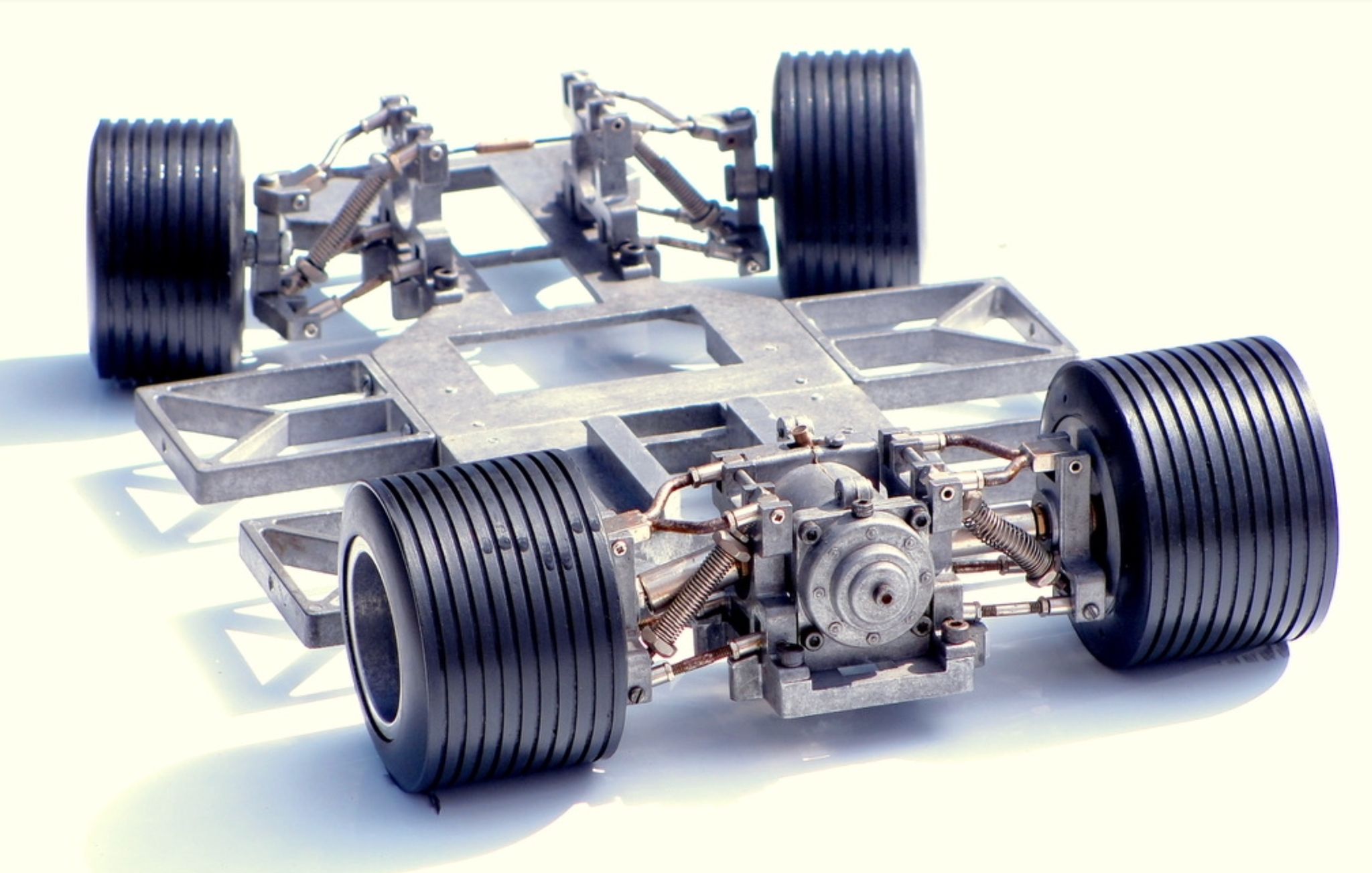 - Chassis: 2mm FRP plate, reinforced with aluminum