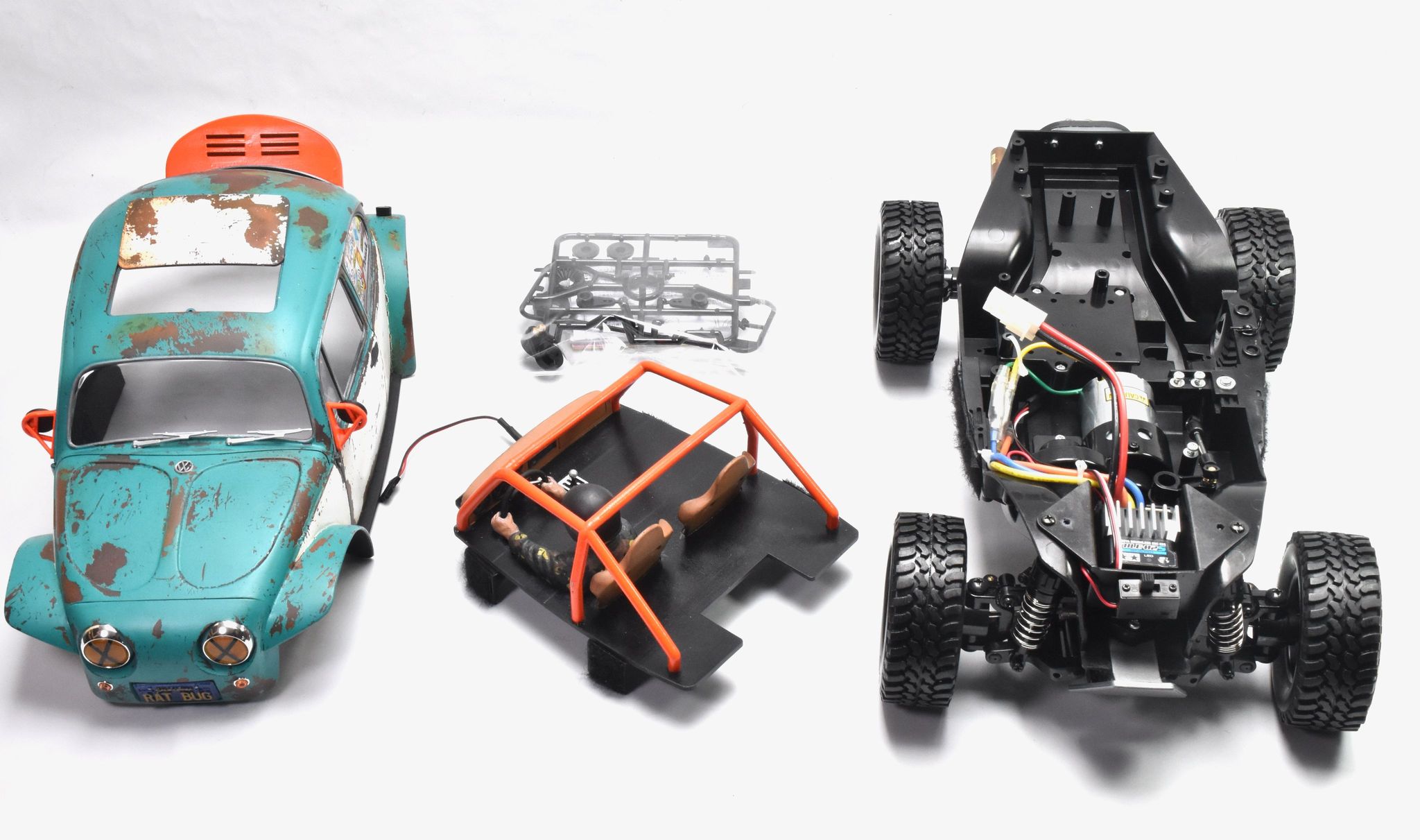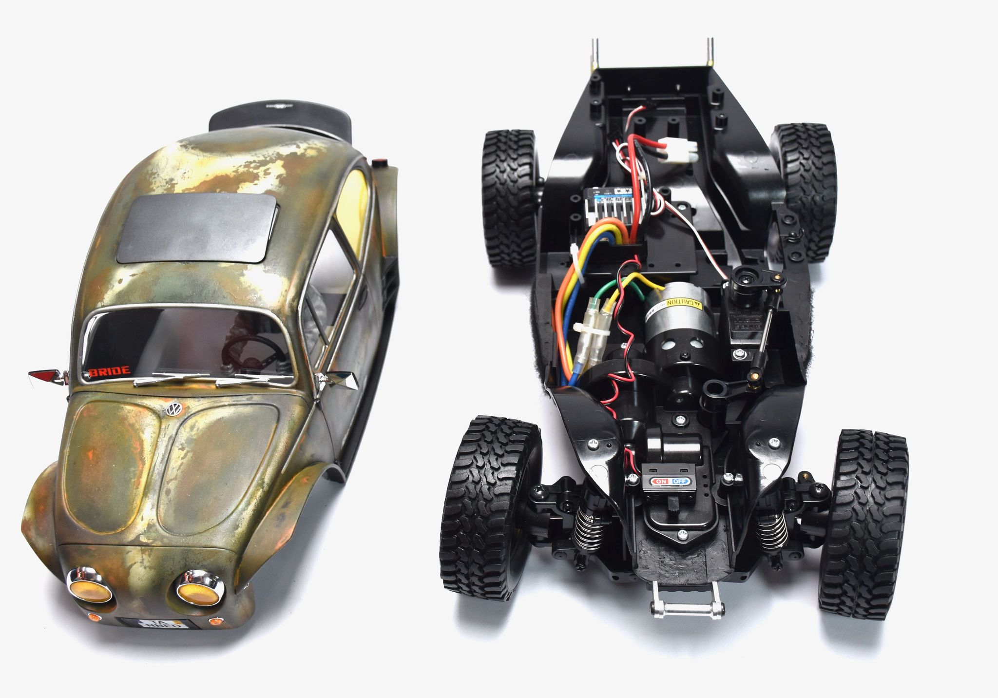 Understandably, the mating of the Sand Scorcher body to the CC-01 chassis was not a quick and easy feat. It took Bruno hours of trial and error where he needed to cut the chassis, make thermoplastic body mounts with Velcro in order to get the bug body to sit perfectly on the chassis. Soon people were asking for his Scorcher CC-01 builds and he made several.