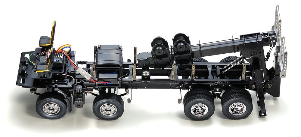 The FH16 Tow Truck supports optional LED lighting for the headlights and taillights, and Tamiya offers additional electronics that greatly enhance the model’s realism and functionality.