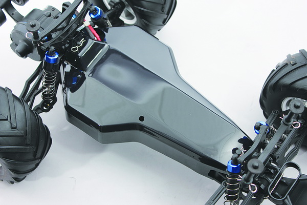 The beefy composite chassis holds everything neatly, and all the components are easy to access. A motor cover keeps the gear mesh clean and is easy to remove, giving access to the adjustable slipper clutch. Velcro provides a secure and easy method of holding down the battery.