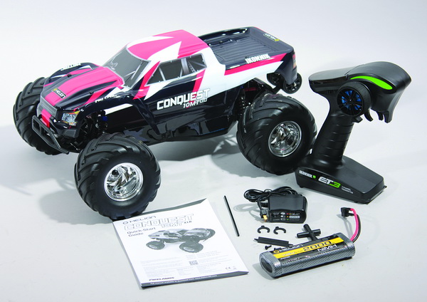 The Conquest really is a blast to drive, not that it will keep up with the hardcore racers at your local track, but it won’t embarrass you either. Stable and confident enough to hit the off-road track, and more than enough power to turn your backyard into a 1/10-scale mud bog, the Conquest is more fun than a barrel full of monkeys, not to mention a whole lot easier to clean up.