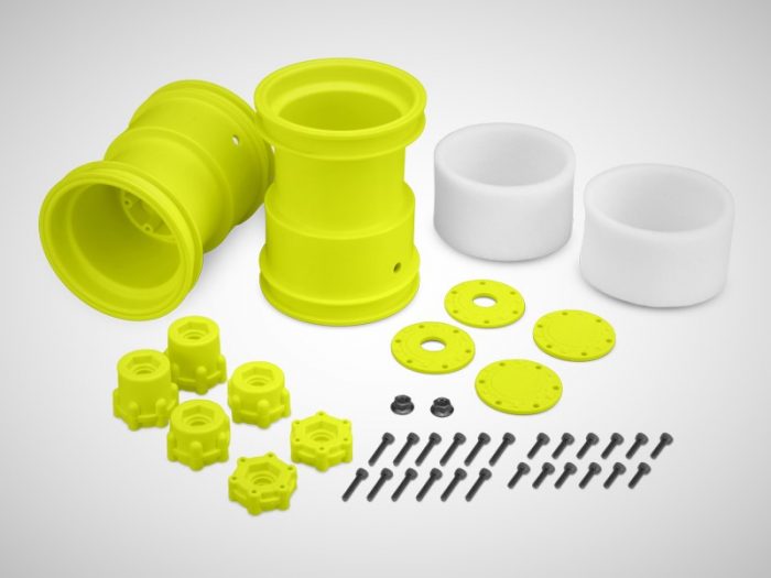 JConcepts is among the most involved racing brands in the R/C monster truck scene. JConcepts shares a passion for monster trucks, both big and small, and continues to show that with the release of their new “Tribute” 12mm wheel in yellow. The new Tribute wheel packs an assortment of options into a design and style that mimics the golden age of Monster Truck racing.