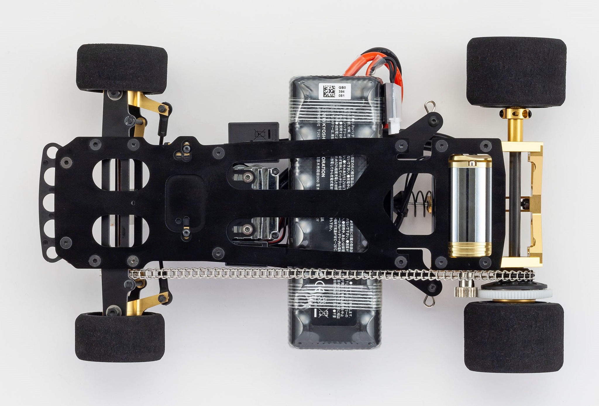 - Black FRP double-deck chassis exhibits an optimal balance of flexibility and strength. Equipped with front reinforcement plate.