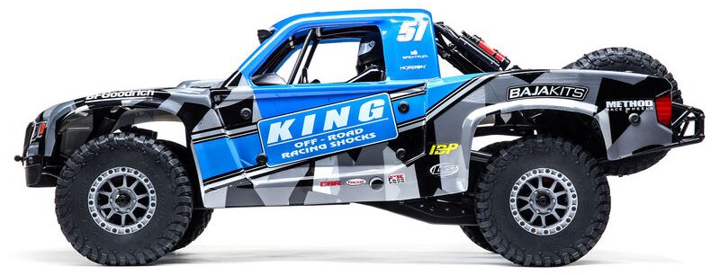 The new Brenthel Trophy Truck body is modeled after their actual race truck providing an aggressive, scale-detailed look. (Also available with a blue body with King sponsor.) The Losi Super Baja Rey 2.0 is the ultimate desert truck with scale looks, insane speeds, performance and Spektrum Smart.