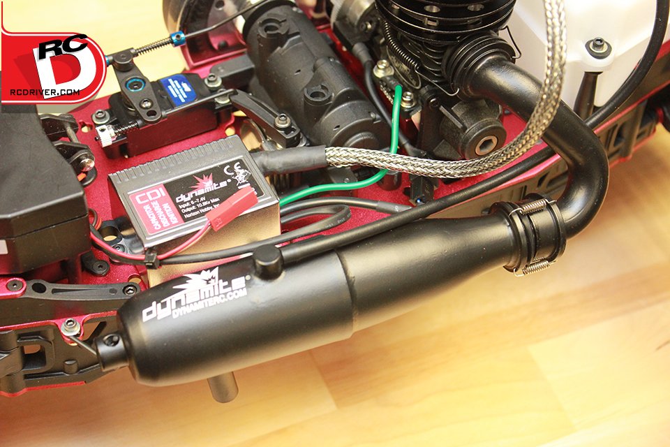 A Dynamite Reaction 2000mAh 5C LiPo receiver pack powers the electronics of the truck including the ignition module.