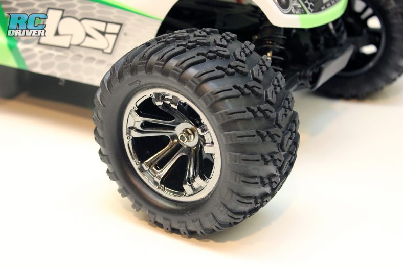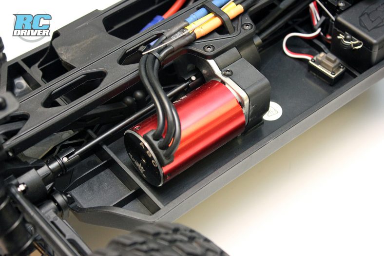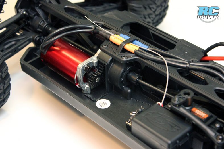 The Losi camp has access to some great electronics through it’s family brands. Control for the truck comes from a Spektrum DX2E-Active radio. This sport radio is equipped with some great features from basic trims to digital EPA adjustments. And you can use the port on the top of the radio to upgrade it with the Spektrum Spedometer or Dashboard. In the truck a Spektrum S605 servo takes care of steering and a Dynamite sensorless brushless motor combo handles power. The Dynamite Fuze ESC 130A ESC can handle 2S or 3S LiPo batteries, just keep in mind it comes equipped with an EC3 connector. The 4-pole 3800kv Dynamite motor should give you plenty of scoot and remember to use to the proper pinion when using a 2S or 3S battery, Losi gives you both in the box. Most of the electroncis are waterproof, but the receiver is only protected by the box it’s in, so don’t go submerging your truck in water, general mud and wet grass driving shouldn’t be an issue.