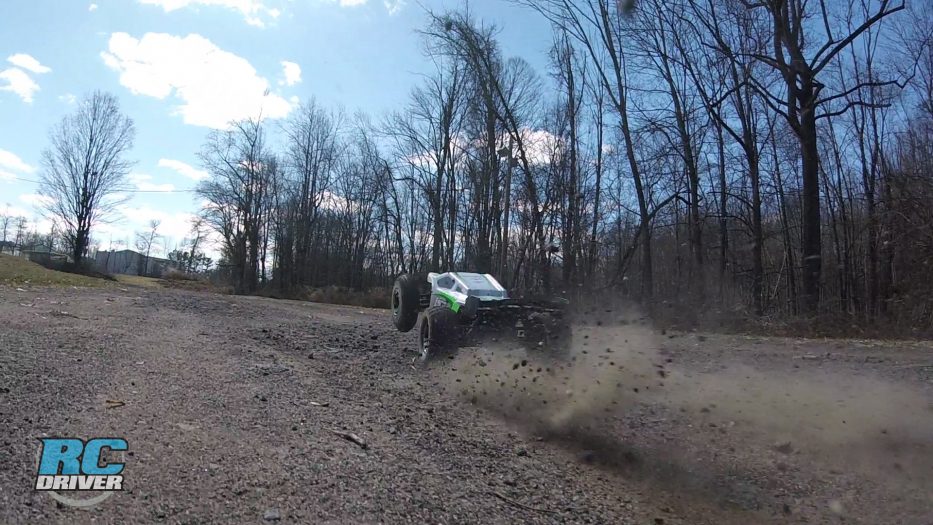 Steering- This truck has plenty of steering for backyard basher use with the included Spektrum S605 servo pushing the dual crank steering. Ripping around in close range in grass and dirt, the truck went where we pointed it. Sure it hooked in the grass and even flipped a few times while on power because of the traction from the tires and on the other side, it can also push a bit on power in the loose stuff. We had the AVC turned down a bit for our liking, but could still feel the steering assist kick in a bit and help keep the truggy under control which helped keep the fun factor high.