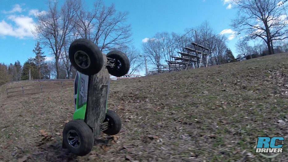 Jumping and Handling- This truck handles rough terrain well thanks to it’s plush race inspired suspension. The suspension worked over time on the ruts of the truck and kept the chassis level. Jumping was pure awesomeness! This truck has lots of speed to push it off of jumps and flies high and far. Just be careful not to hold too much throttle in the air, or the nose will point skyward and you’ll need to tap the brakes to get the nose down for a good landing.