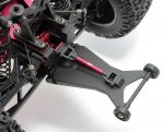 The steering assembly sandwiched between the upper and lower rear chassis plates with support from the composite braces remains unchanged from the previous LST. A wire drag link connects the two cranks and two servo-saver style horns have short rods to push the cranks. There’s two horns because there are two Spektrum S601H servos handing the steering power.