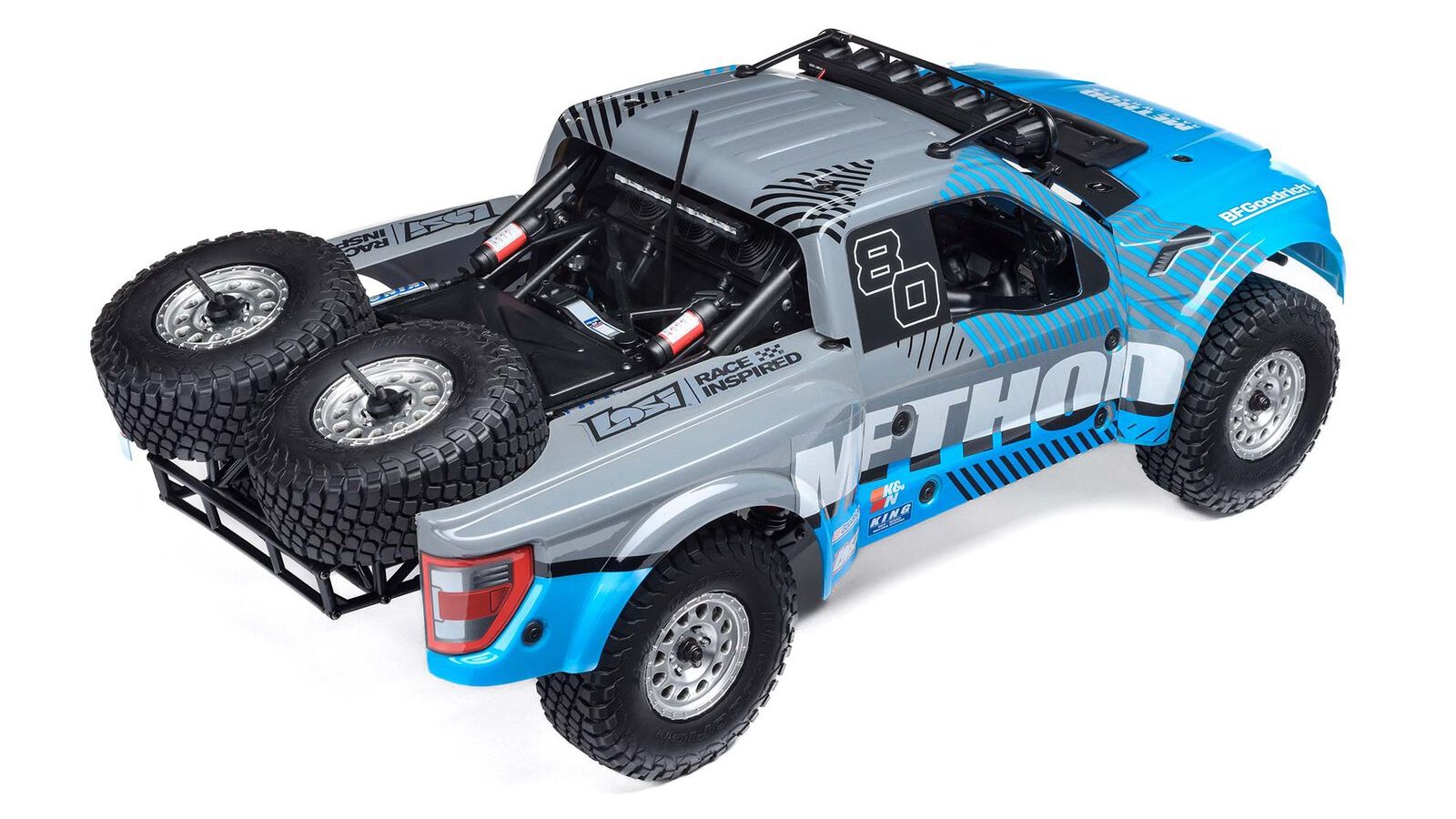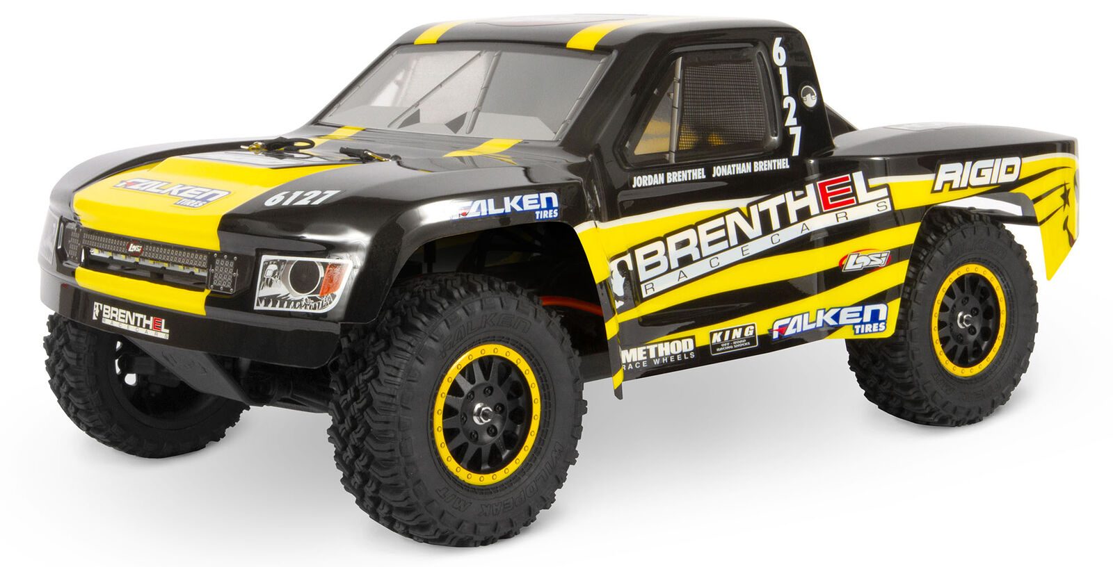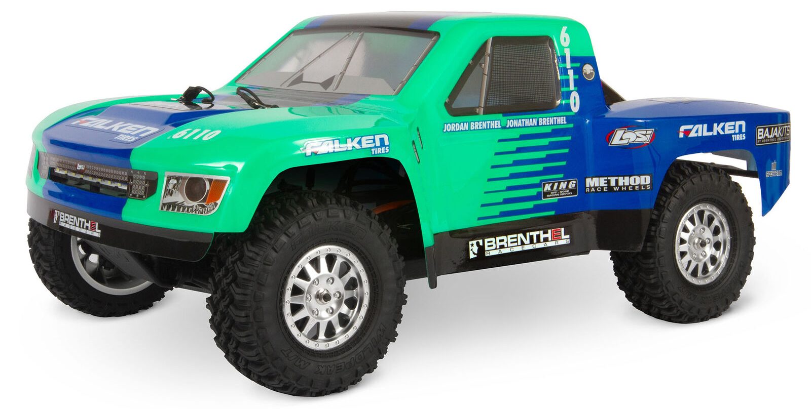 Must-see Losi RTR off-road trucksShort Course trucks are so much fun to drive and race and that experience can be even better when stepping up from a 2WD truck to a 4WD truck like the Tenacity TT Pro. Based on the legendary Losi TEN platform, the Tenacity uses a rigid 4mm aluminum plate with independent front and rear suspension, adjustable turnbuckles, swaybars, aluminum shock towers, threaded body oil-filled shocks, and three robust metal gear differentials. Getting the power to the ground is a set of officially licensed Falken Wildpeak MT tires that are wrapped around Method wheels. The Tenacity TT Pro is available in two flavors: the officially licensed Brenthel trophy truck body or the Falken tires body.