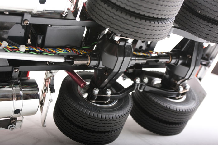 A 2.4GHz Planet T5 transmitter along with a Planet R6M receiver provides the control for this big rig. Handling the steering duties is a Tower Pro MG-995 high-torque servo with metal gears.
