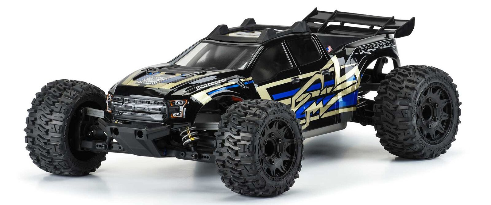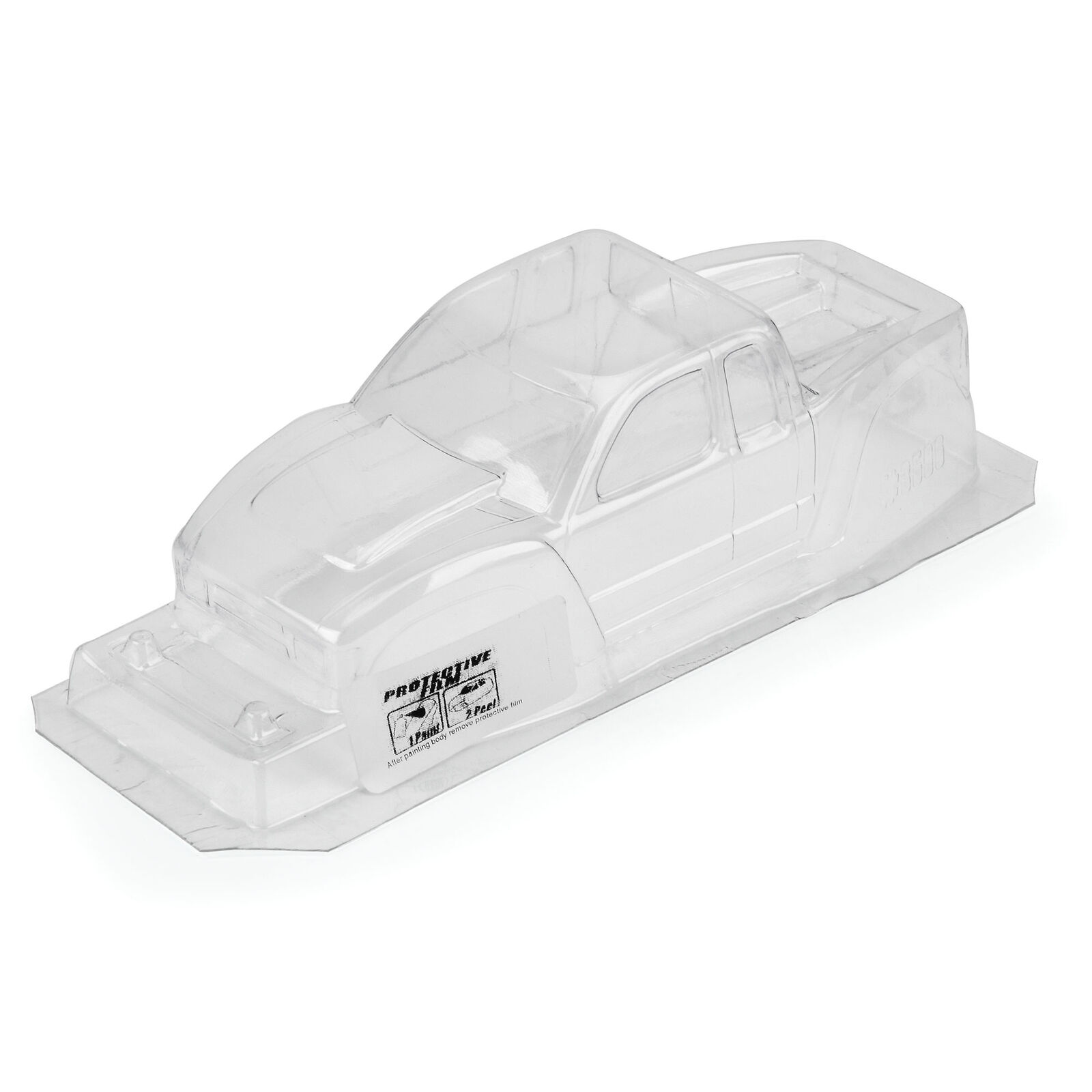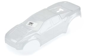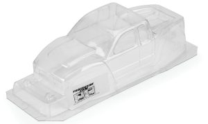Most stadium truck bodies have a pretty ordinary, no descript body that look alike. Breaking that mold is the Pro-Line Pre-Cut 2017 Ford F-150 clear body that has serious hardcore styling that is drawn from the full size Ford Raptor trucks. Pro-Line created this body especially for the popular Traxxas Rustler 4×4. For ultimate convenience, it comes pre-cut which speeds up the time it takes to get this body mounted on the chassis and it is a direct fit on the stock Traxxas cage and body mounting system. Add your own paint scheme and your stock Traxxas Rustler 4×4 will be completely transformed.