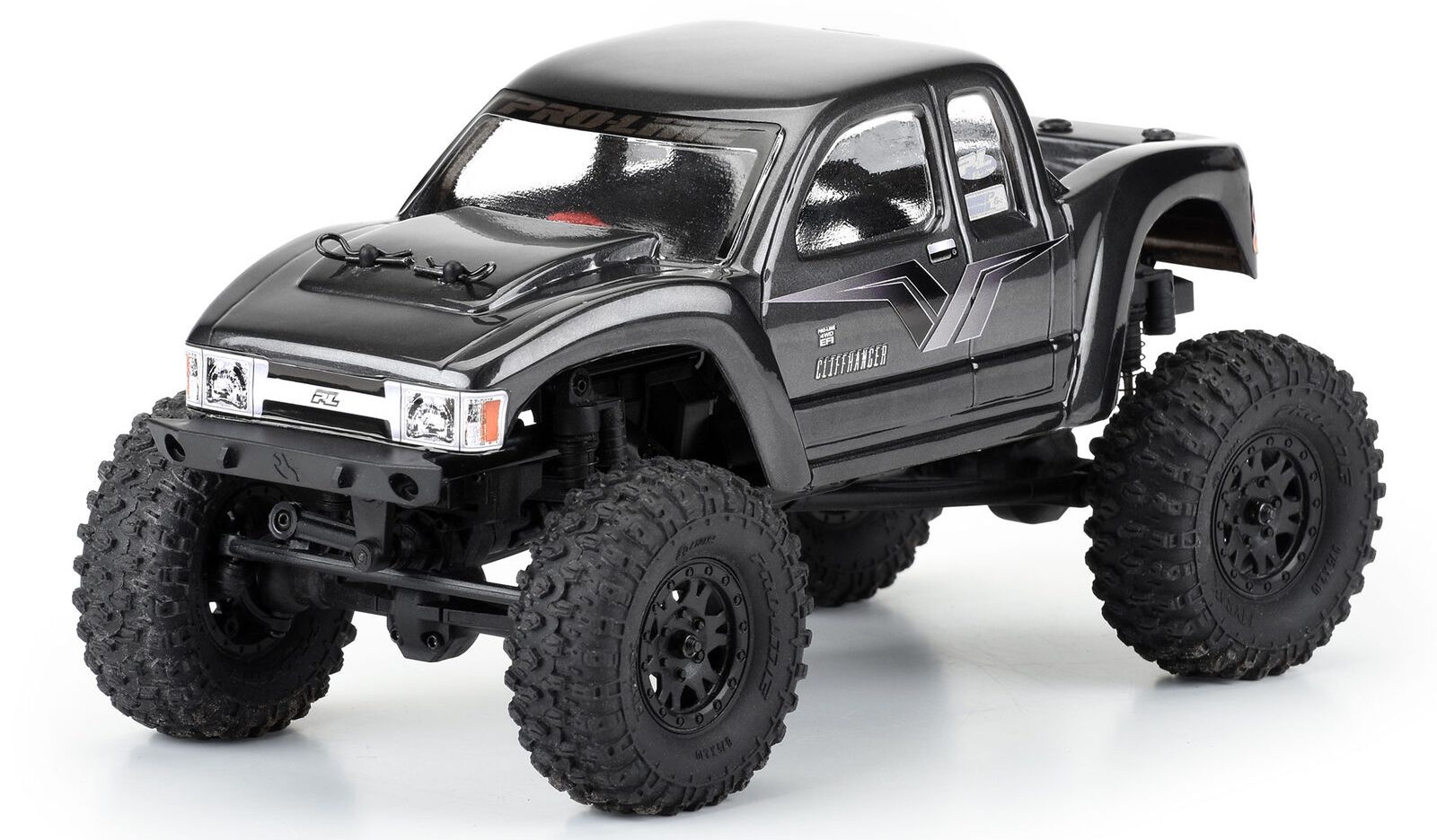 There is no question that small scale off-road trucks are very popular right now with countless vehicles to choose from. A standout in the bunch is the Axial SCX24 which is a great performer and is supported by many option parts to make this small truck even better. For these reasons we had to pick the Pro-Line Cliffhanger High Performance clear body which features a pinched front end and a dove-tailed rear for maximum tire clearance while still exuding a true-to-scale appearance. Pro-Line molded the Cliffhanger out of a single piece of crystal-clear poly carbonate to save on weight. You will also notice the bed is made so you can add your own scale accessories. For added realism, molded headlight buckets come with the body.