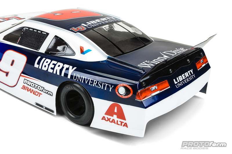 If you race oval with rubber tires, be sure to check out this great-looking PROTOform RT-C Light Weight clear body. This body was inspired by the 1:1 stock cars that raced in the 2017 Xfinity series. What makes this special for the RC oval racing crowd is the RT-C has a bit of a variation where it is configured to perfectly fit over the taller rubber and capped tires.