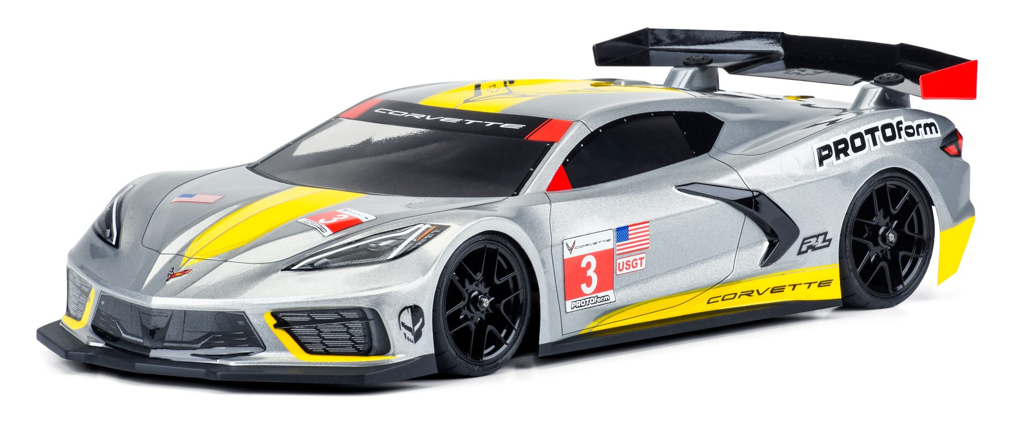 1/10-scale touring car owners were definitely psyched when they saw the release of the PROTOform Chevrolet Corvette C8 clear body. In the full-size world, the Corvette C8 became one of the most highly anticipated vehicles that Chevy has ever built when it was first announced that the new Corvette was being reinvented. Once released, the 1:1 Corvette C8 was a knock-out with its all-
