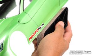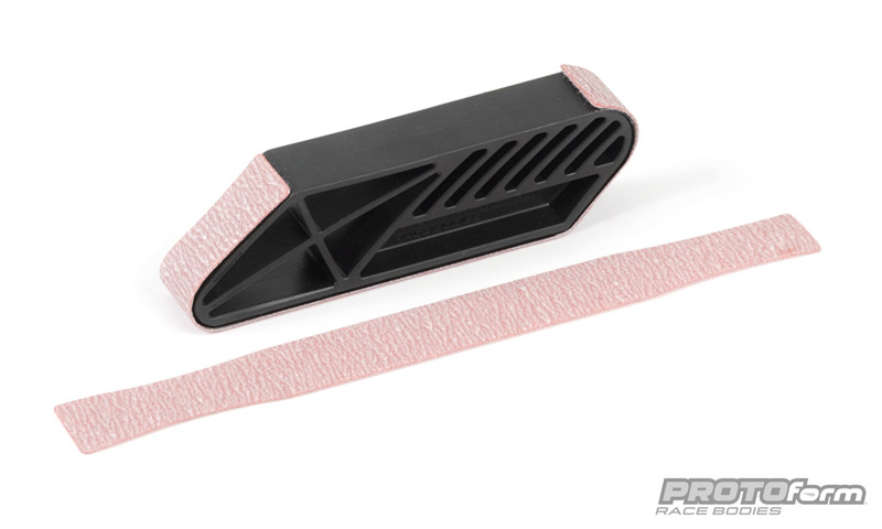 To nicely complement the Sanding Drum, PROTOform developed the Sanding Block. The Sanding Block picks up where the Sanding Drum leaves off and will give you the perfect straight edge and can get to all the nooks and crannies on your race oval body. It is made of injection molded nylon with a shape that is both ergonomic and racy. PROTOform designed the Sanding Block to smooth out scissor imperfections along the long edged of the body. Not only that, the two rounded ends of the block are different radius sizes to fit different parts of the body. One has a 1/4-radius and the other has a 1/2-inch radius. You will find that the Sanding Block will also work great to sand parts as well as tires.