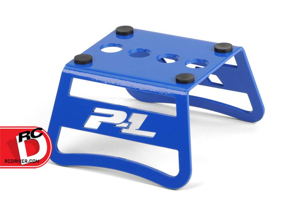 The MX car stand from Pro-Line got its inspiration from the popular MX bike stands. The laser-cut, bent and powder-coated blue alloy Pro-Line car stand is ready to display your car in the best way possible. The stand even has shock-building holes for added versatility. The included push-in rubber grommets protect your chassis and will prevent your car from sliding around.